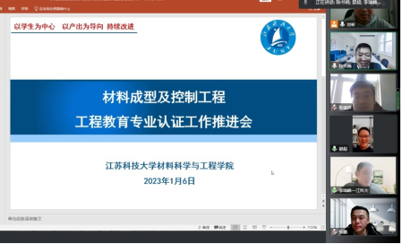为了进一步推进专业认证工作,2023年1月6日,我院召开了材料成型与控制工程教育专业认证工作推进会,院长晏超,党委书记李瑞峰、副院长陈书锦以及材成系认证工作小组成员、骨干教师参加了会议,此次会议由陈书锦副院长主持。
