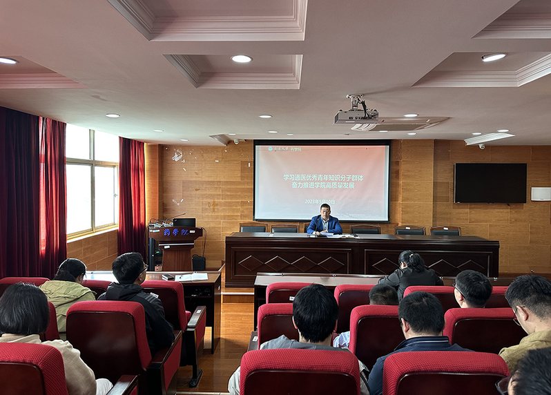 5月10日,药学院召开全体教工大会,深入学习贯彻习近平新时代中国特色社会主义思想和党的二十大精神,学习通医优秀知识分子群体精神。会议由党委书记徐建主持。