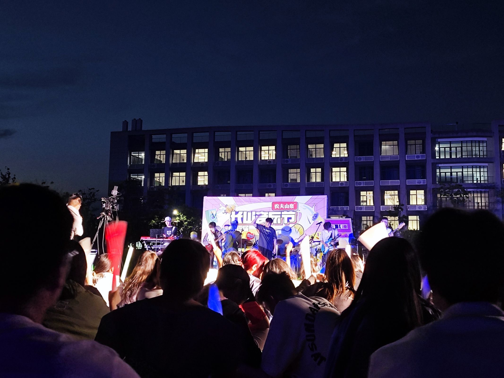 首支乐队出场乐队,为我们带来了《一路向北》、《彩虹》等歌曲,用经典流行的旋律点亮了音乐节的浪漫氛围,还陆续演绎了《河流》、《完美夏天》、《直到世界尽头》、《永远都会在》、《海浪》、《在时间的答案里》、《如常》、《爱的初体验》、《私奔到月球》、《yellow》等优秀作品。随后,“Oho”、“小猫派对”、“桃乐茜漫游日记”等多支乐队为大家带来一首首欢快的歌曲,现场观众一边跟唱一边随着音乐节奏舞动手中的荧光棒,表演者与观众都乐在其中。各位实力乐手在秀出自己的技术时,也让音乐突破定格和框架,让艺术融入大学生活。音乐节还发起了“号码抽奖”环节,大幅提升了同学们的参与感。