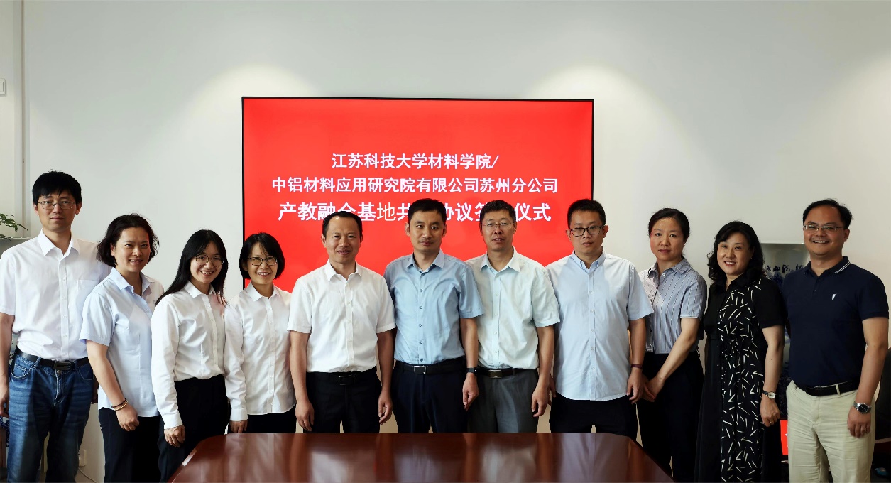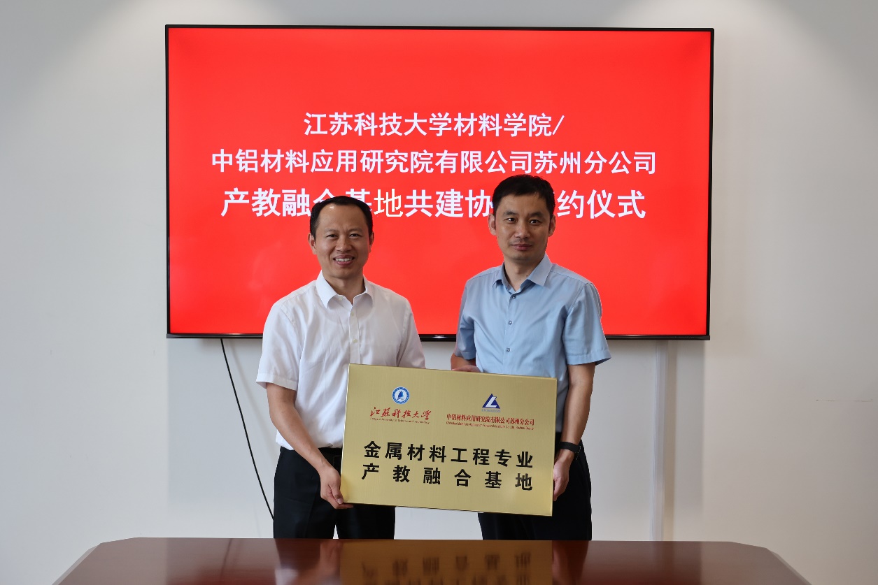 李瑞峰书记表示,希望双方以产教融合基地的建设为起点,逐步扩大材料学院与中铝材料应用研究院有限公司苏州分公司的合作范围,期待后续能在就业基地建设、党建工作以及科研合作等方面有进一步的交流,促进校企双方高质量发展。钟鼓总经理解读了中铝集团在校企合作方面的新政策和新导向,相信苏州分公司和江苏科技大学材料学院未来一定会在产品攻关、分析测试以及高校、企业联合育人等方面有实质性的深入合作。