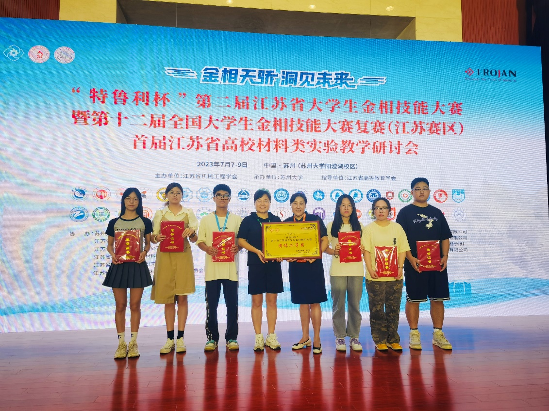 2023年7月7日至9日,由江苏省机械工程学会主办、苏州大学承办的“特鲁利杯”第二届江苏省大学生金相技能大赛暨第十二届全国大学生金相技能大赛复赛(江苏赛区)在苏州大学成功举办。来自东南大学、中国矿业大学、南京航空航天大学、南京理工大学等全省42所高校的252名选手参加了比赛。通过激烈的比赛角逐,我院农芊纤同学荣获一等奖,甘婵、张舒威及郑军涵同学荣获二等奖,张茗言和郑旺同学荣获三等奖,材料学院获得团体二等奖,三位教师获得优秀指导教师奖。