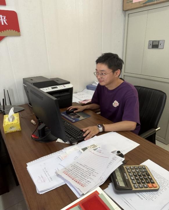 图为实践团成员赵书海同学在完成村委工作 赵书海供图