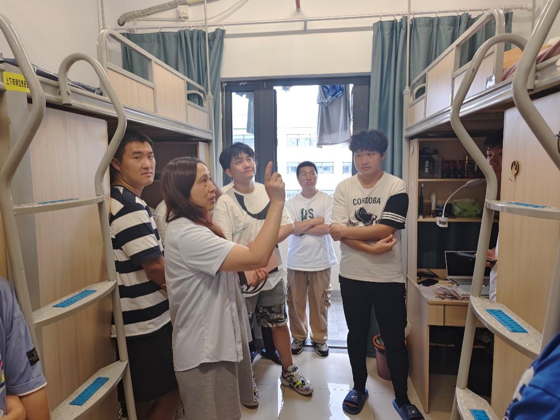 首先,王阿姨带领大家走进宿舍,实地讲解宿舍安全方面的知识以及过往学生宿舍检查中存在的安全隐患。接下来王阿姨通过真实的校园安全事故案例,为大家普及宿舍中易发生的安全事故,让同学们了解到宿舍安全的重要性和必要性。此外,王阿姨针对同学们的日常内务整理进行了讲解,并给新生提出了几点建议。