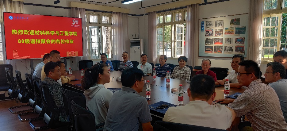 10月1日,材料学院88621、88622班9位校友从各地回到母校参加毕业31周年活动,原副校长王加友、原校纪委书记夏纪林、原材料学院院长芦笙、原材料学院副院长邹家生、材料学院院长晏超、党委书记李瑞峰、副书记杨海涛,以及当年的任课老师方臣富、周方明、沈巧玲参加了返校活动。