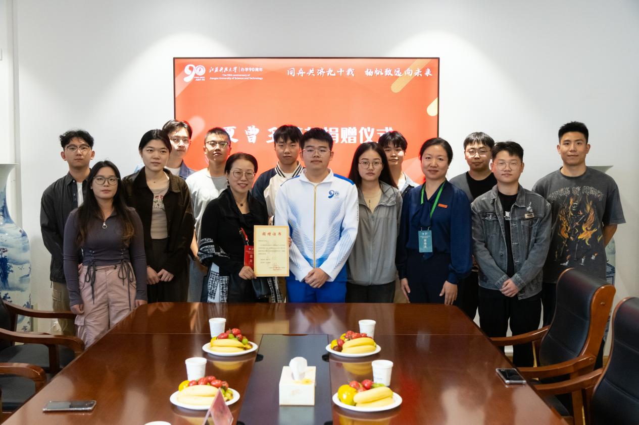 秋风送爽,新篇启航。正值江苏科技大学九十周年校庆之际,10月26日下午,材料科学与工程学院在材料楼512会议室举行校友捐赠仪式。92届焊接毕业生夏曾玉,学院师生代表参加仪式。捐赠仪式由学院党委副书记杨海涛主持。