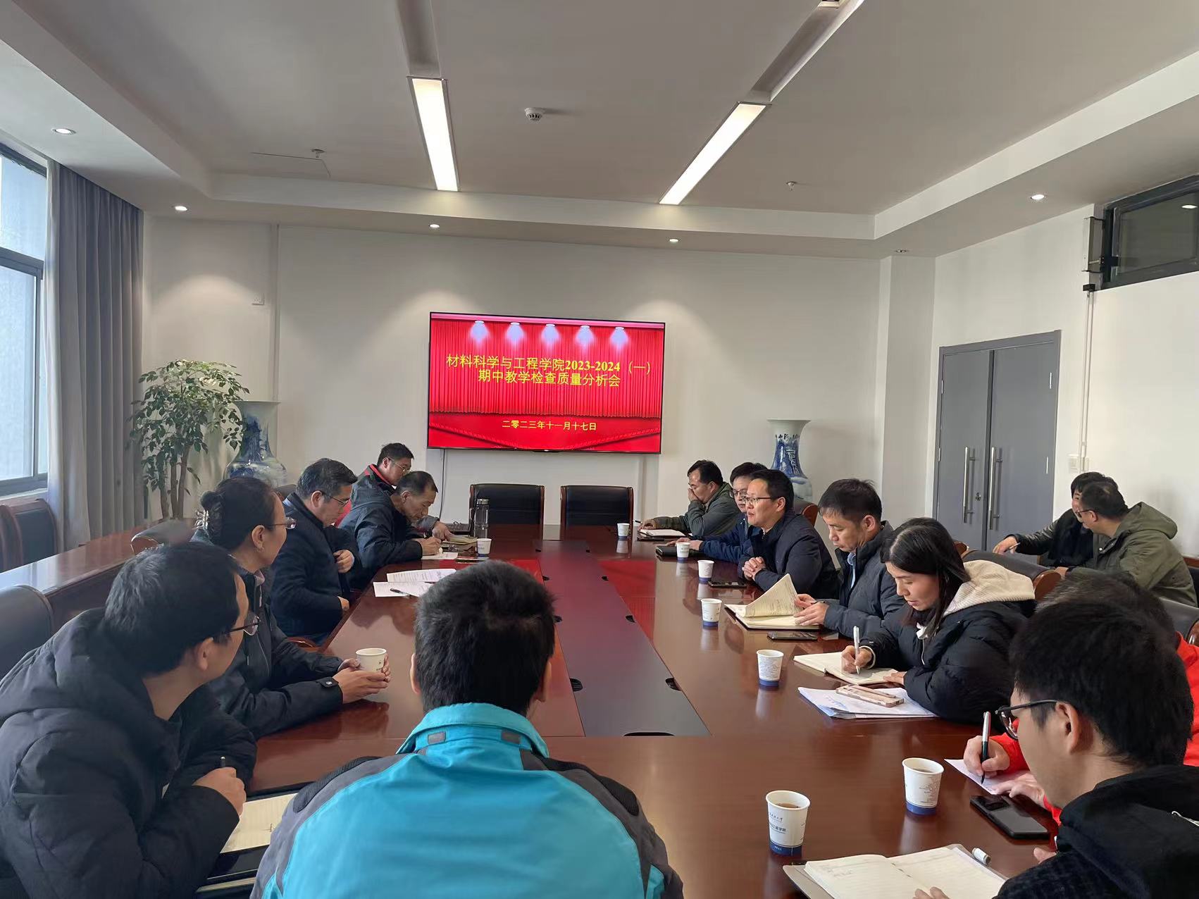11月17日下午,材料学院在长山校区材料楼512召开迎评促建阶段总结及教学质量分析会。校评建工作领导小组副组长、人事处处长 朱志宇、校本科教学督导组专家李滨城、学院院长晏超、学院党委书记李瑞峰、教学副院长陈书锦、院督导组专家,各系正副主任,专业负责人,教师代表参加会议,会议由陈院长主持。