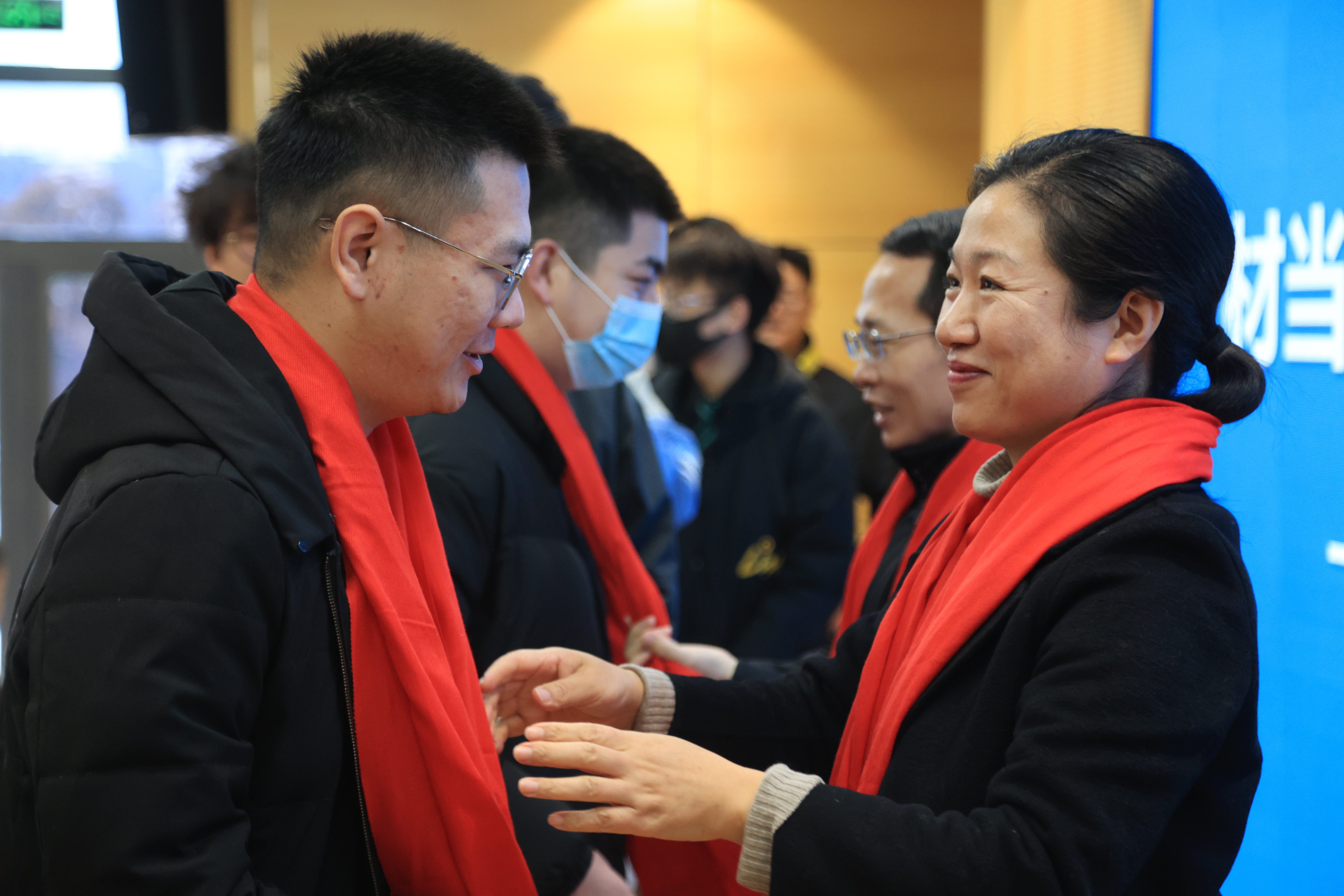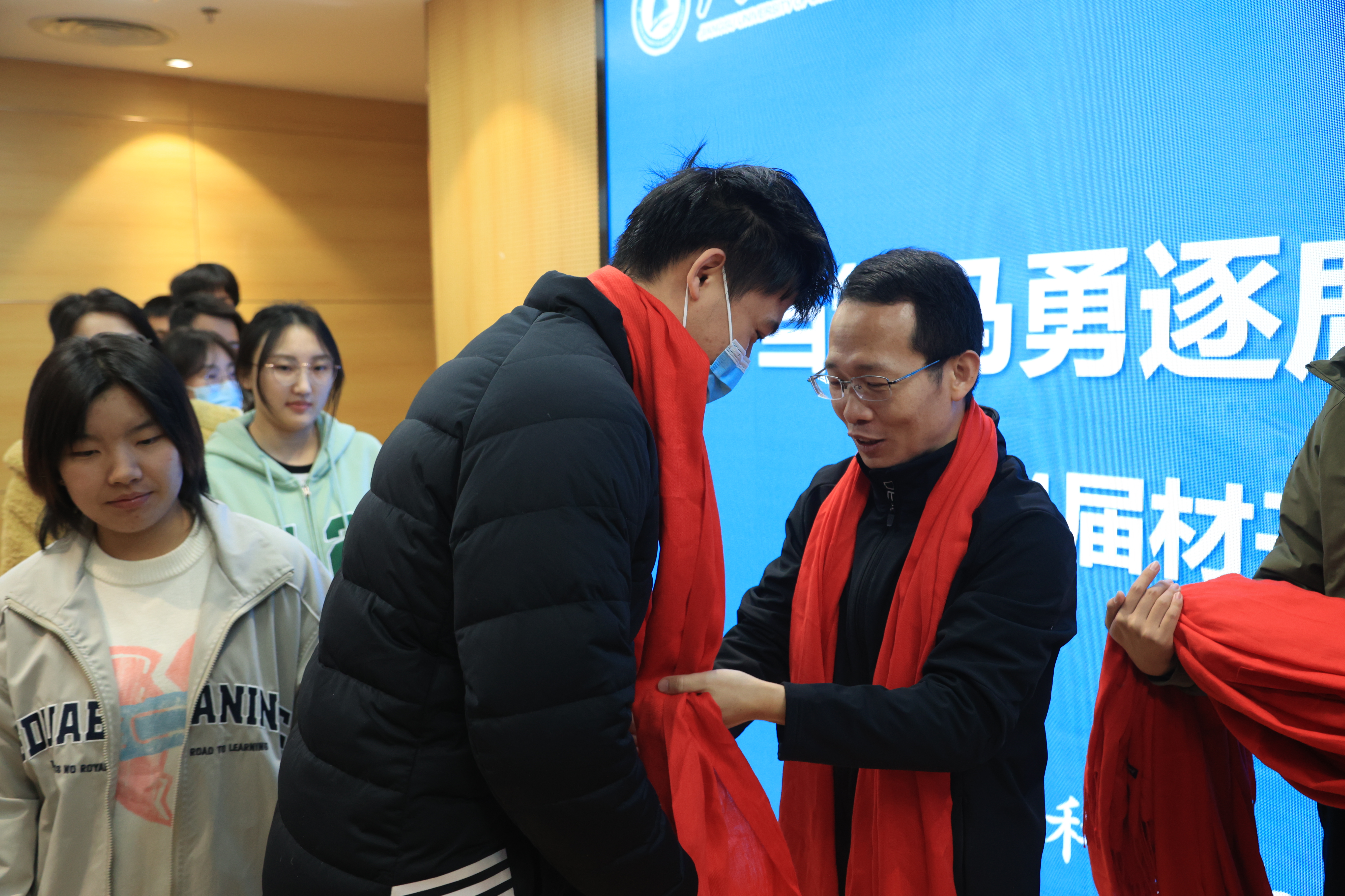 学院还为每位考研学子准备了暖心礼品,一条印有院徽的红色围巾,寓意备考“红围巾”,考点全打尽;一个小挂件,祝愿考生“一举夺魁”;一枚橙子,寓意“前程似锦”。