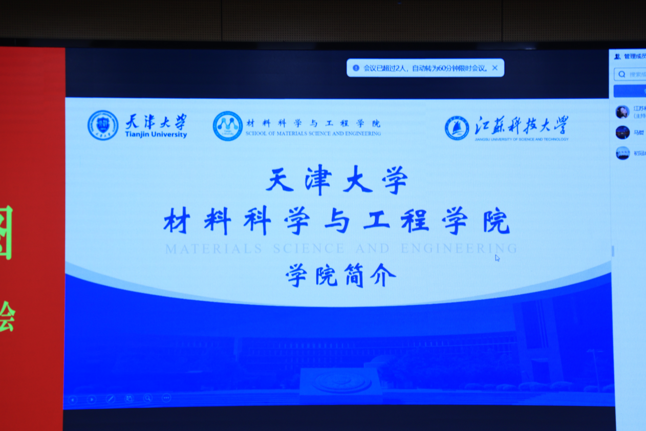 天津大学马哲教授向大家介绍了天津大学以及天大材料的历史与现状,展示了天津材料学院雄厚的师资力量和良好的科研平台。