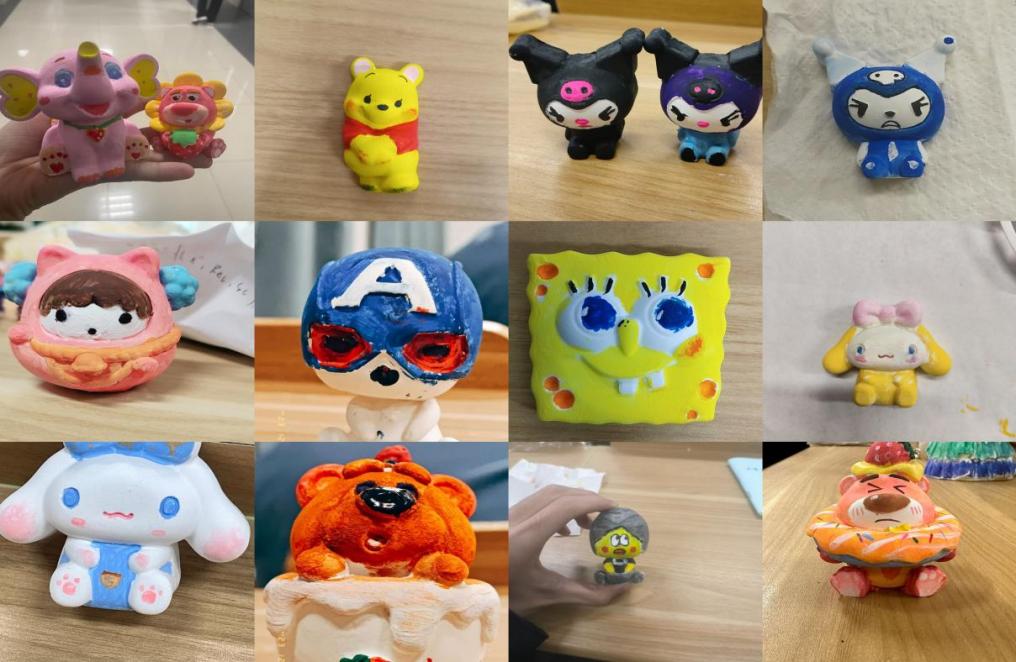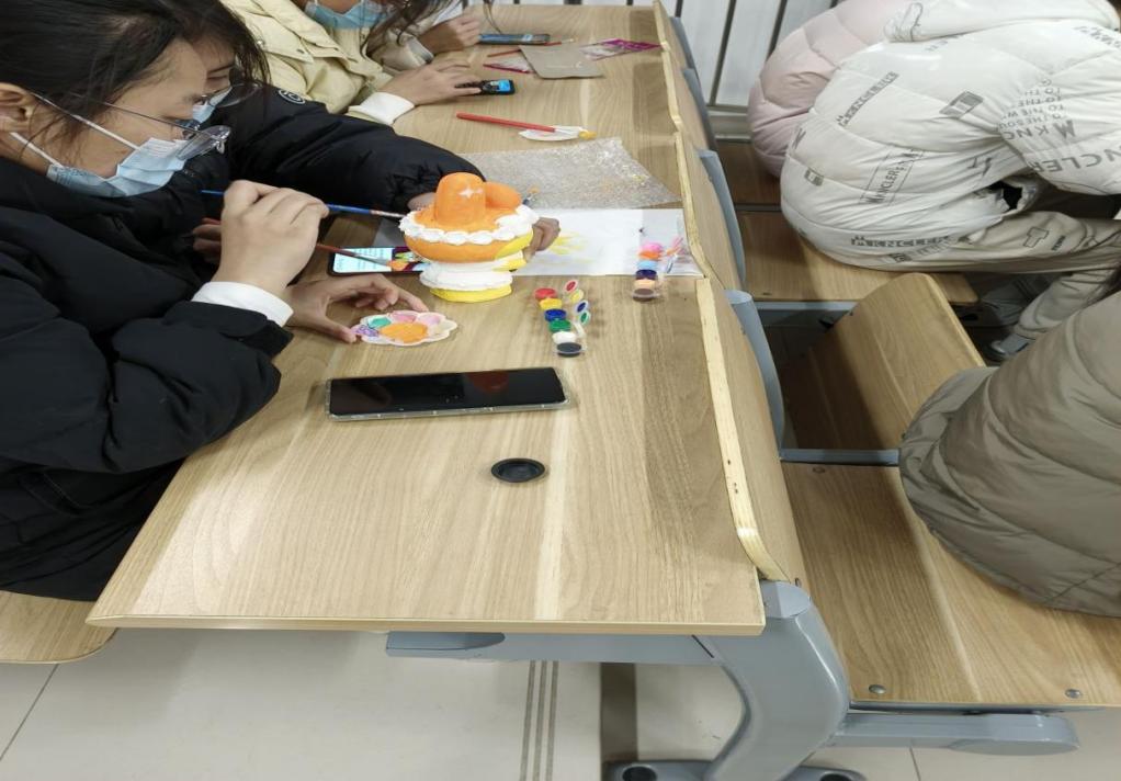 活动现场提供了丰富的彩绘材料和工具,包括颜料、画笔、刷子等,供大家自由发挥创意。同学们借助彩绘的方式,选择不同的图案、色彩和纹样,挥洒着五彩斑斓的颜料,将自己的想法表达出来,将一块普通的石膏娃娃打造成独具个性的艺术作品,一个个可爱独特的石膏娃娃映入眼帘。绘制完毕后,同学们互相分享彩绘心得,交流艺术灵感,共同探讨艺术创作的乐趣。活动过程充分展现了同学们的想象力和创造力,大家通过表现自我、舒展自我内在情感,调节心理,释放情绪,帮助形成积极的思维方式和生活态度。