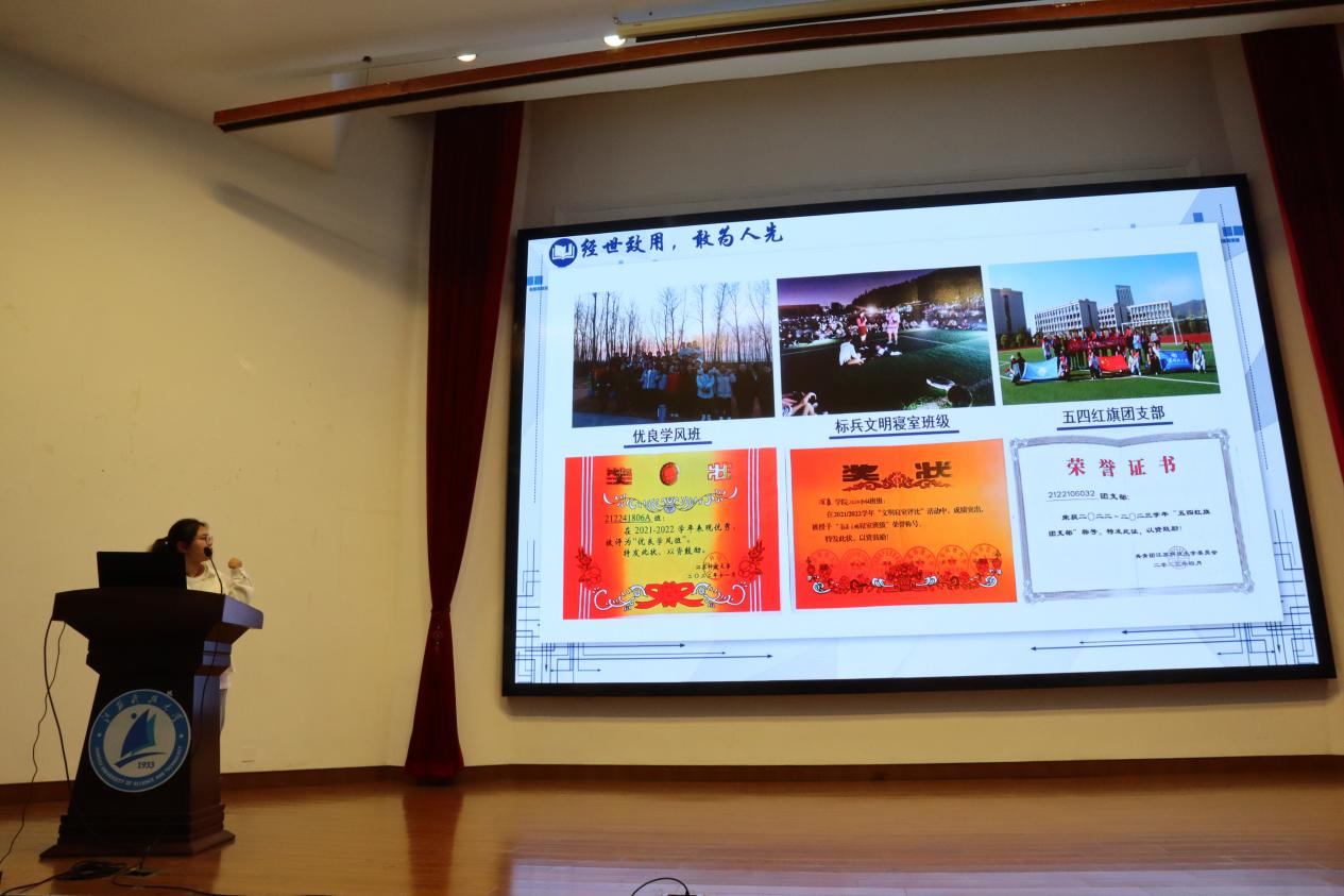 功能材料的王钥瑶学姐首先对功能材料专业进行了全方位的讲解;其次她从三个方面讲解自己的学习历程,从大一逆袭的她,担任多个干部职务,以就业道路为目标,一步一个脚印,锻炼了自己的组织和领导能力。她认为同学们应当以终点的心态来规划起点,明确自己的职业目标,并通过参加实习和竞赛等活动,提升自己的竞争力,建议同学们选择什么样的道路,就不断往那个方向前进,制定计划,不盲目的学习。同时,她分享了自己的志愿奖项与各类证书,希望同学们不应将自己的目光仅仅局限于书本之上的倡议。她以自己的亲身经历告诉同学们,大学生可以拥有更为广阔的舞台,在不耽误自己的学业的情况下,不断参加与组织活动既是对社会的回报,也是自我能力的提升,更是以后同学们谈天说地的资本。最后王钥瑶学姐以“生逢盛世,勇担使命,心怀家国”的话语激励我们不断地前行。