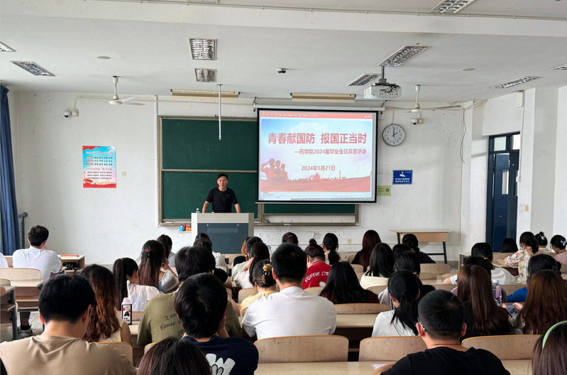 为深入贯彻落实征兵工作有关精神,鼓励和引导大学生积极应征入伍,激发学生报效祖国,献身国防的热情,5月21日,药学院举办“青春献国防 报国正当时”2024届毕业生征兵宣讲会,校人武部吴卫国老师进行征兵宣讲,全体2024届毕业生参加宣讲活动。