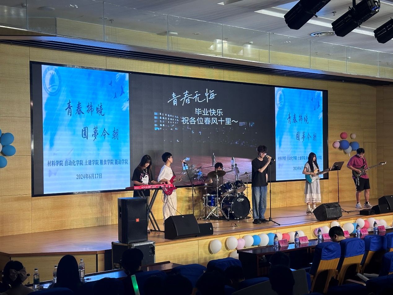 “青春拂晓,圆梦今朝”毕业晚会于617日晚在长山校区图书馆B105举行,材料学院联合能动学院、土建学院、自动化学院、粮食学院为2024届毕业生送上青春祝福。
