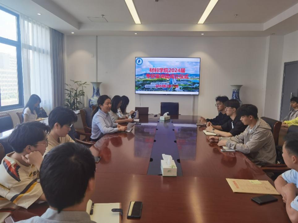 在成团仪式上,副书记杨海涛指出,毕业季也是宣讲季,宣讲团承载着材料学院学风建设的重要任务,起到了承上启下的作用;宣讲团成员都是优秀的材料学子,希望大家将成长经历、学习方法、学习态度传递给低年级的同学们,鼓励更多的同学发展与成长。刘志红老师介绍了宣讲团的具体工作方式、分工和要求。学院还在长山校区举行了优秀考研学子展,激励着低年级学子奋发向上、自立自强。