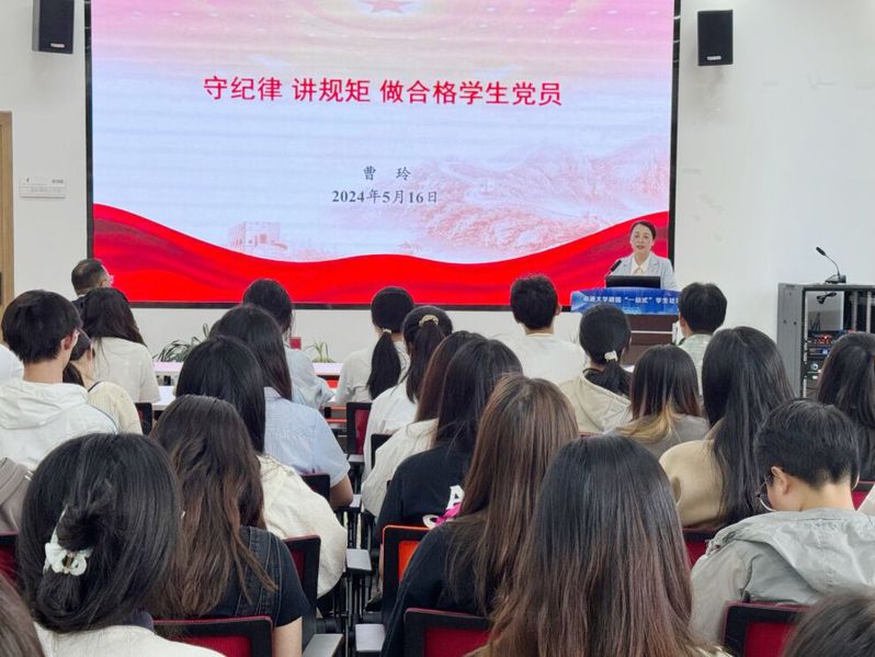 5月16日-23日,药学院举办第十期发展对象培训班。培训班上,学院党委书记曹玲进行开班动员,并做《守纪律讲规矩,做合格学生党员》专题报告,带学员们从党纪学习的角度进行了教育,要求学员们认真学习党章、严格遵守党纪、自觉把党章的精神和要求内化于心、外化于行。