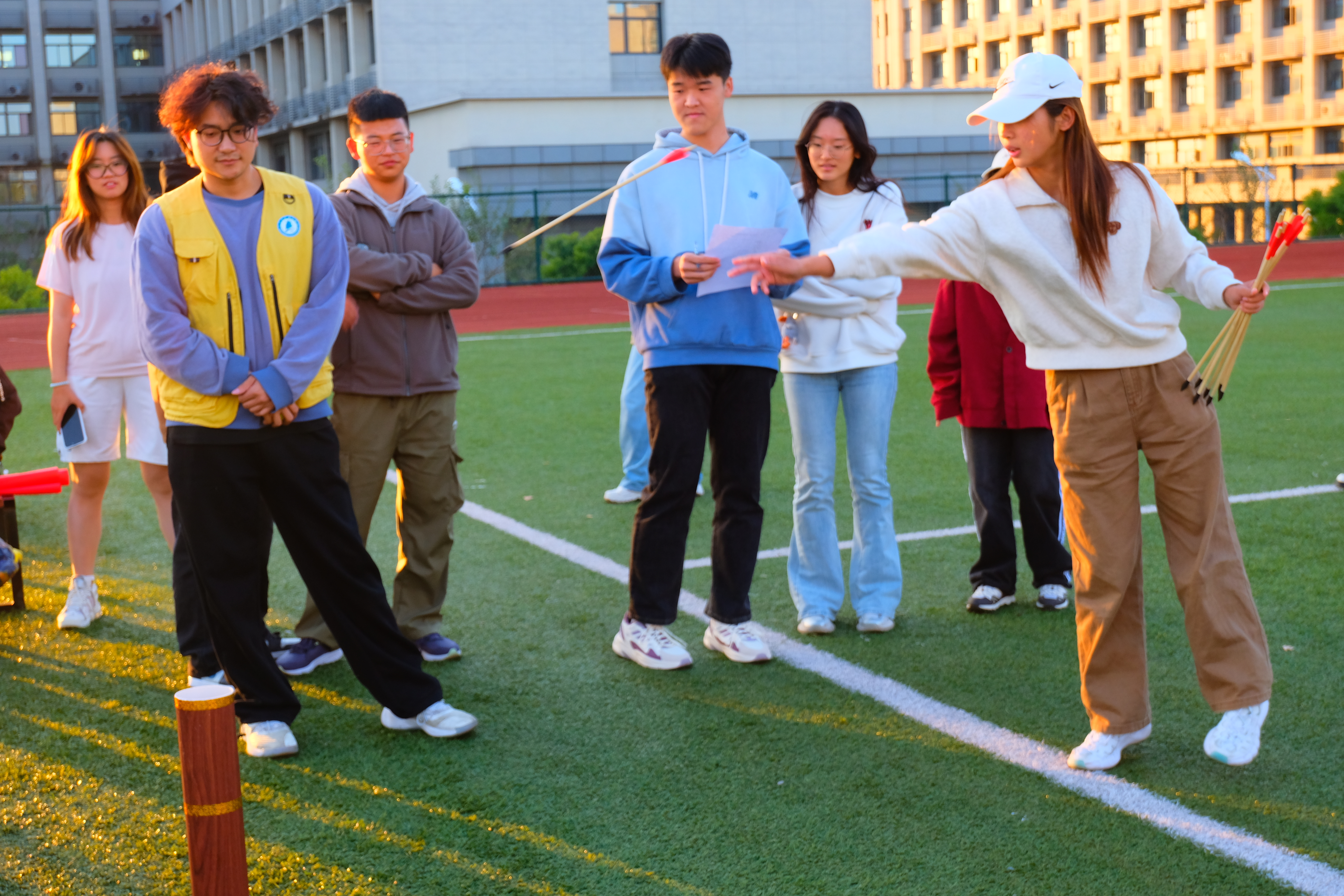 11月5日,新生班委和优秀的学长学姐们齐聚东操场开展户外趣味活动。在投壶游戏中,同学们个个手持箭矢,眼神专注而坚定,那瞄准的姿态宛如专业的射手。投壶游戏恰似一阵清风,为大家送来了难得的放松身心的绝佳契机。伴随箭矢精准无误地落入壶中,平日里因学习而累得紧绷的那根神经,仿佛一下子找到了舒缓的出口,渐渐松弛了下来。在趣味沙包游戏环节,沙包在空中来回穿梭,好似一个个灵动的小精灵。参赛的同学们则全神贯注,他们身姿敏捷,灵活地躲避着飞来的沙包,时而快速奔跑,时而巧妙侧身,展现出了极佳的反应能力和身体协调性。