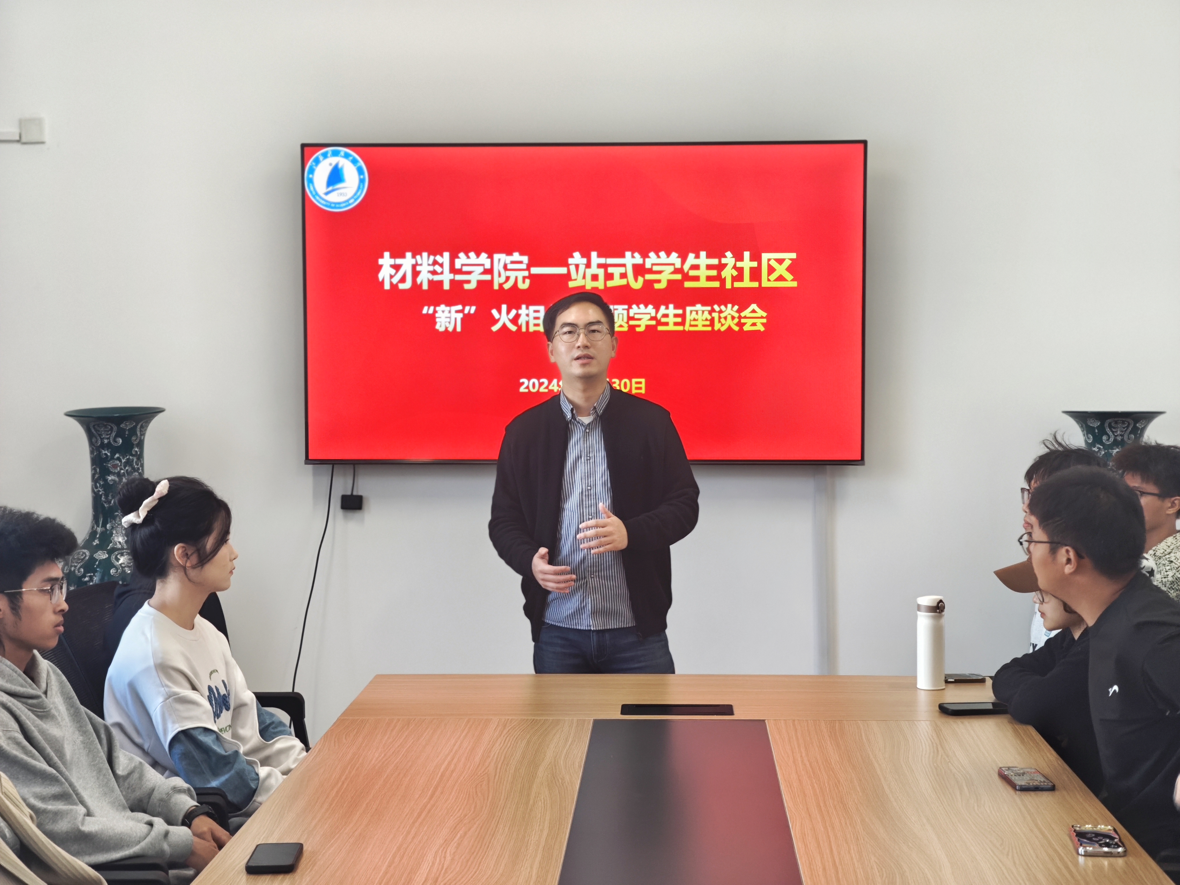 10月30日,材料学院在“一站式”学生社区举行“‘新’火相传”经验交流会。学院党委副书记杨海涛、2024级本科生班委、院研究生会全体成员参加。会议由李鹏飞老师主持。