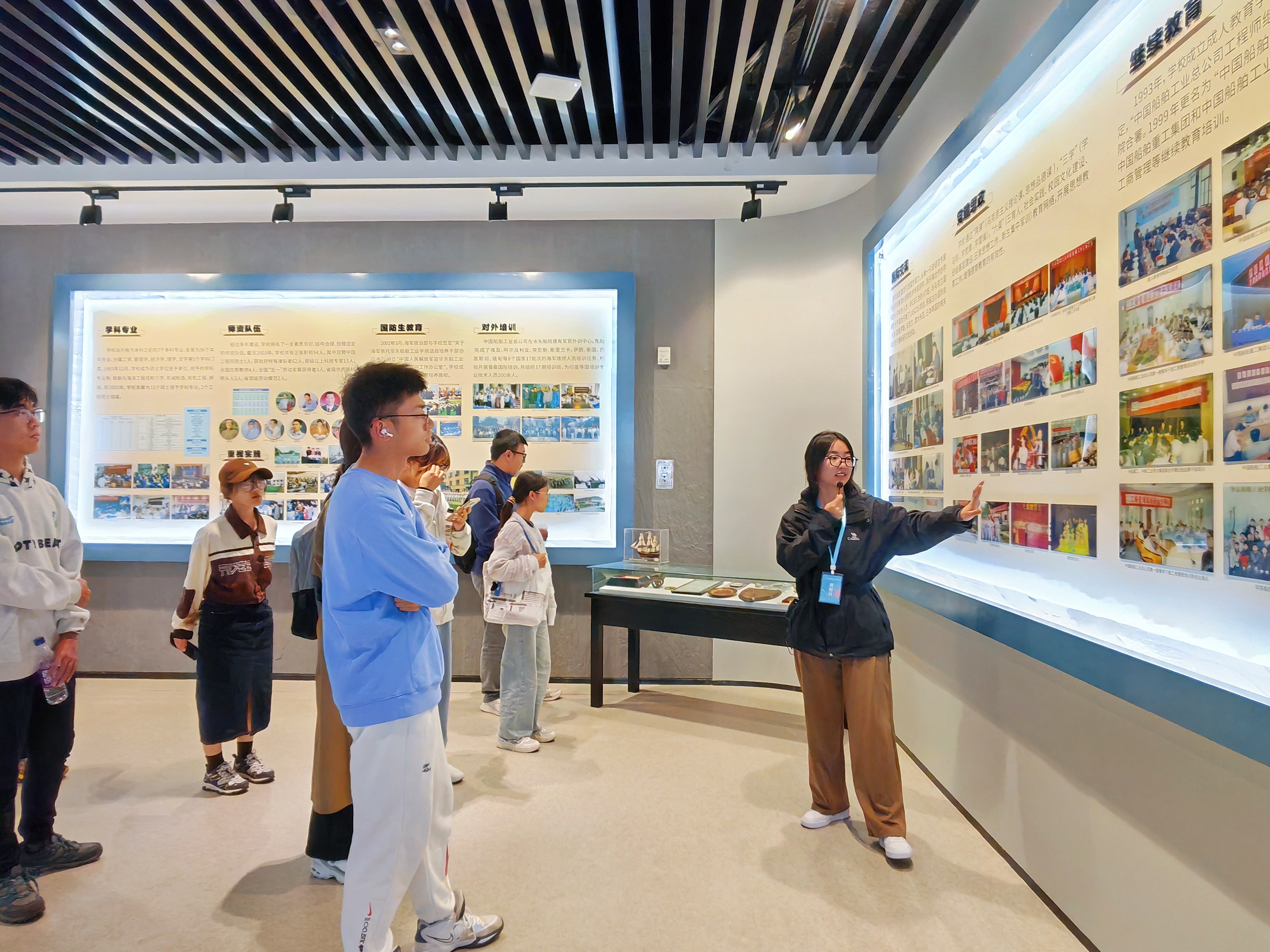 为增强对学校历史的了解,培养爱校荣校的情怀。10月31日,新生班委们踏入校史馆,通过讲解员的解说,深入了解了学校的创办历程、杰出校友的事迹、丰硕的科研成果以及丰富多彩的校园文化。新生们仿佛穿越时空,领略着学校一路走来的风雨兼程与荣耀辉煌。在参观到船舶特色展厅时,学生们纷纷驻足观察展柜中的船模。在寓教于乐中深刻感受到了学校深厚的船舶文化底蕴。蚕桑特色展厅展示的各类蚕丝制品更是让同学们大开眼界,对学校的办学实力和人才培养质量有了更加直观的认识。