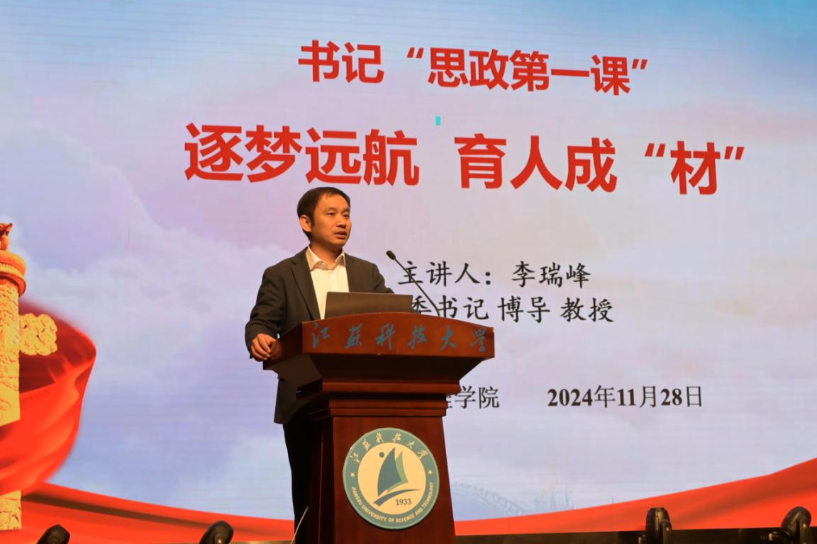 最后,学院党委书记李瑞峰为大一同学们带来了精彩的“书记思政第一课”。李书记以学院的历史发展为切入点,详细讲述了学院的创立背景、发展历程以及学科建设的丰硕成果,让新生们对学院有了更加全面而深刻的认识。他强调,大学是人生的重要阶段,是塑造人格、培养能力、积累知识的关键时期,同学们不仅要深入学习专业知识,更要注重综合素质的提升,包括思维能力、创新能力、团队协作能力等。李书记还特别提到了材料领域面临的卡脖子关键技术问题,指这些关键技术是我国科技发展和产业升级的瓶颈,需要一代又一代的年轻人去攻克。他寄语同学们要敢于追梦,勇于担当,将个人的理想追求融入到国家和民族的发展大局中去,为国家的繁荣富强贡献自己的青春力量。