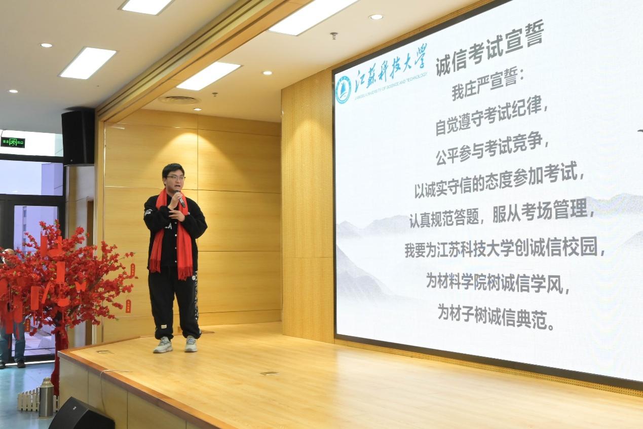 学生代表钱相睿同学带领全体学生进行考前宣誓,激励同学们的斗志,增强信心,舒缓压力。
