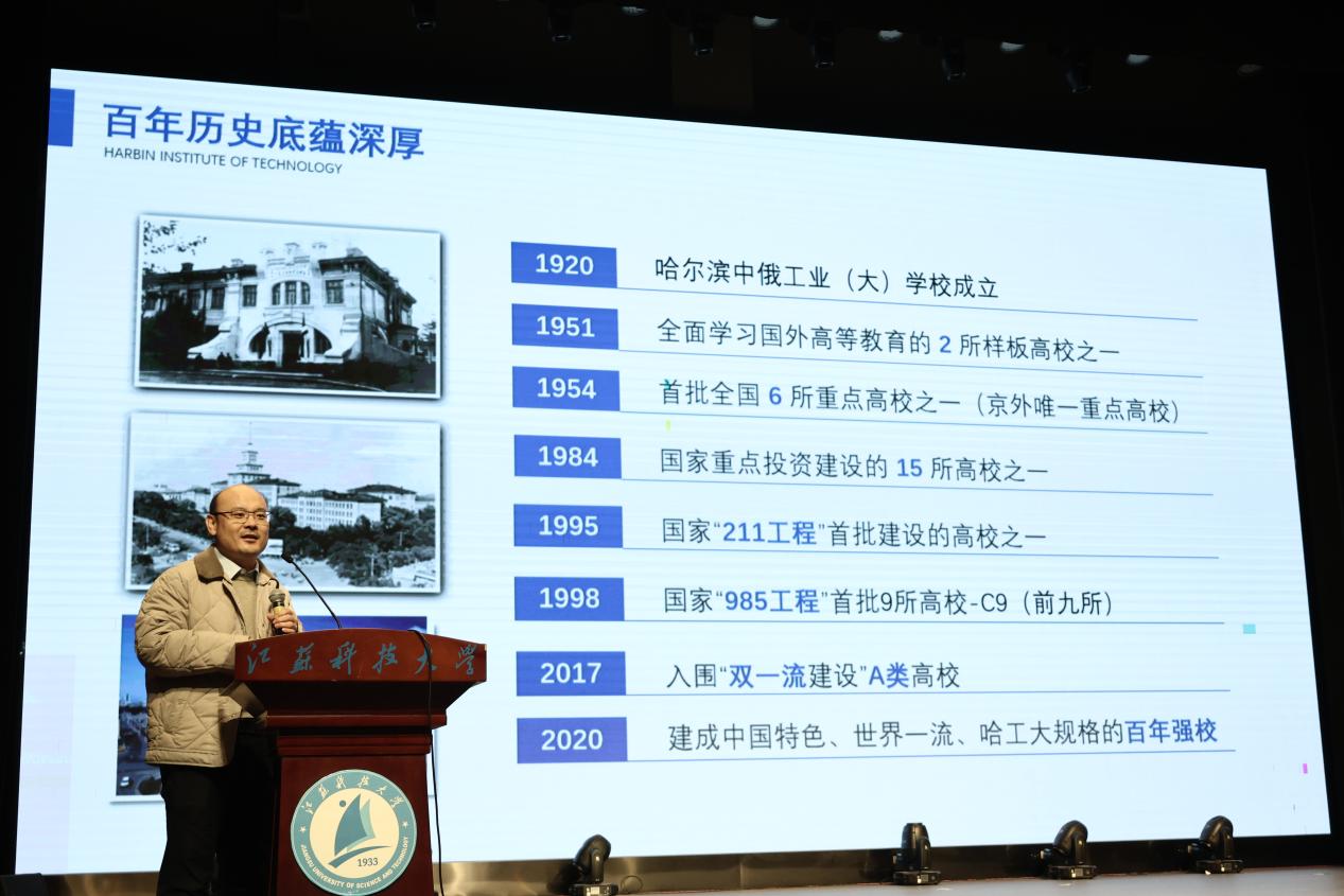 随后,哈尔滨工业大学王廷教授,向学生们展示了哈尔滨工业大学威海校区材料学院在国际合作、学生交流、科研成果转化等方面的突出成就,并为处于选择期的同学们提供了非常宝贵的建议。