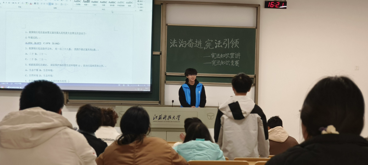 知宪法于心,守宪法于行。为了深化同学们对宪法精神的理解与实践,,12月3日下午,蒲公英义工站和本科生第三党支部举办了宪法知识竞赛。竞赛以趣味答题的形式进行,激发了同学们参与的热情。。每一次抢答的成功,都伴随着现场热烈的掌声与欢呼。此外,义工站还特别准备了小礼品,作为对同学们学习宪法热情的鼓励与肯定,进一步激发了大家学习宪法的浓厚兴趣。