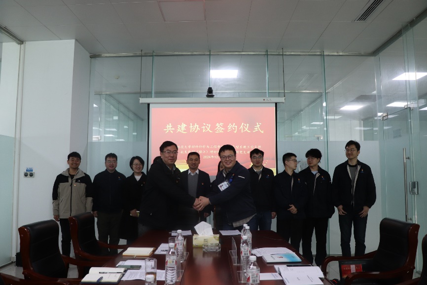 为深入学习贯彻党的二十大和二十届三中全会精神,认真落实省委“高校科研院所党建要重点在助力科技创新上下功夫”部署要求,2024年12月5日,材料学院材料成型系教工党支部与航发优材(镇江)增材制造有限公司党支部开展以“党建融合驱动新方向,创新践行新质生产力”为主题的共建活动,“以共建促党建,以共建促合作,以共建促发展”。活动在航发优材(镇江)增材制造有限公司开展,航发优材(镇江)增材制造有限公司党支部书记、常务副总经理孙兵兵,综合部长王芸,技术部副部长张峰,技术部副部长房立家,生产主管周莹超,组织委员陈雪梅;材料学院党委书记李瑞峰,学院党委副书记杨海涛,材料成型系教工党支部书记臧千昊,支部委员尚凡敏、杨飞等相关支部党员参加共建活动。