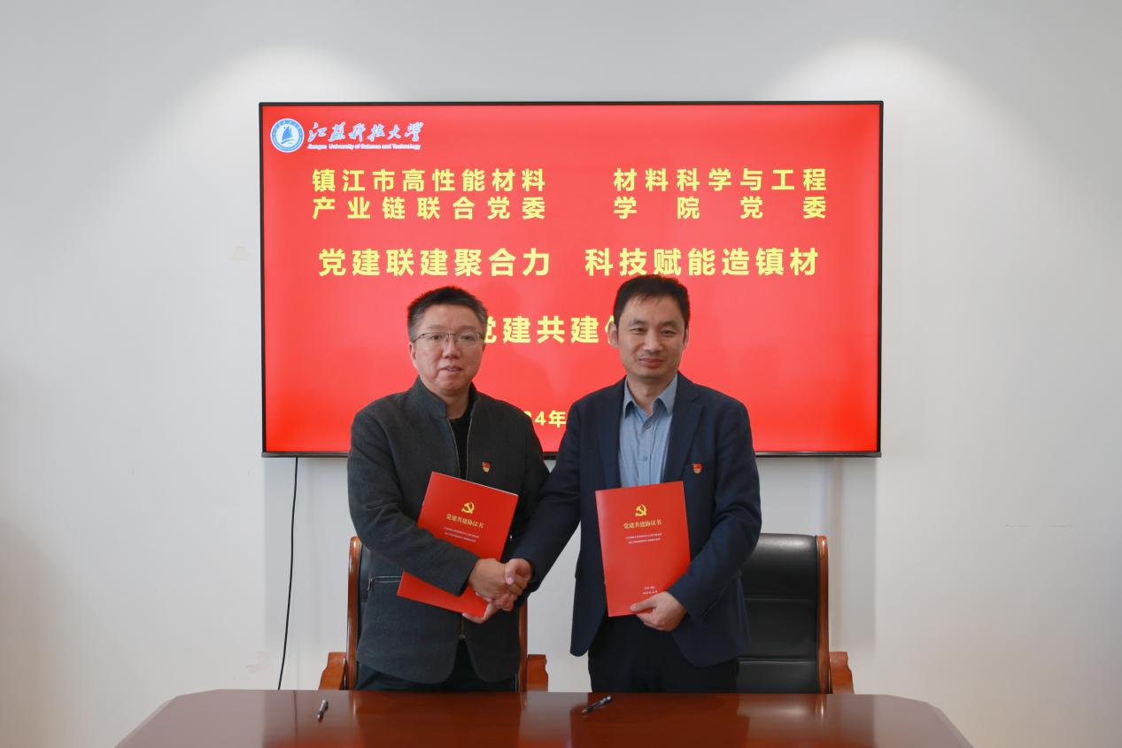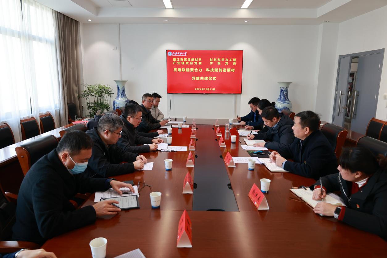 12月13日,材料科学与工程学院与镇江市高性能材料产业链联合党委以“党建联建聚合力,科技赋能造“镇材””为主题开展党建联建。江苏科技大学机关党委书记、组织部副部长祁凯,材料科学与工程学院党委书记李瑞峰,镇江市工信局党委委员、副局长陶迪明,镇江市工业和信息化局材料工业处处长刘光彦,航发优材(镇江)高温合金有限公司党支部书记袁华,江苏鼎胜新能源材料股份有限公司党总支书记刘倜,江苏恒神股份有限公司先进制造事业部党支部书记张海锋,材料科学与工程学院相关教师出席活动。