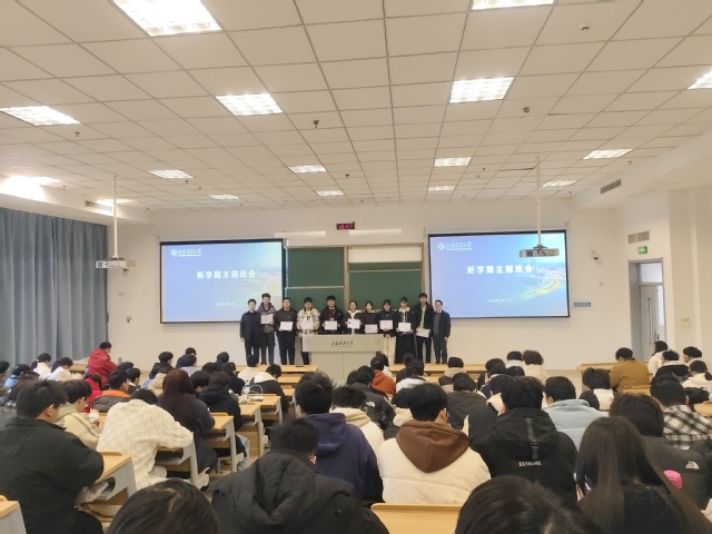 班会伊始,晏超院长结合学院发展目标与学生成长需求,以“锚定方向,行稳致远”为主题发表讲话。他充分肯定了上学期同学们的努力与进步,特别对综合绩点提升显著的学生提出表扬,并现场为12名“进步之星”颁发荣誉证书。