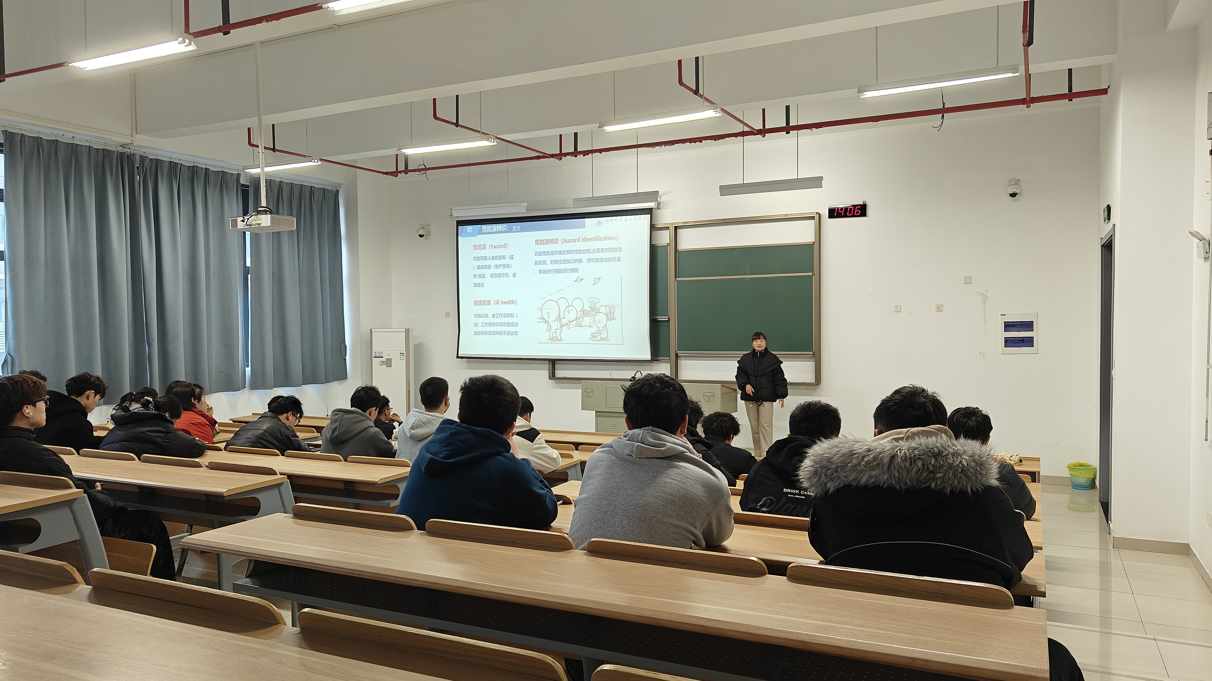 讲座中,董真真老师以生动详实的方式,首先对实验室中常见的危险源进行了系统的分类与详细讲解。她结合实例,深入剖析了化学试剂、电气设备、机械设备等不同类型的潜在危险因素及其表现形式,帮助学生建立起清晰的风险认知框架。随后,董老师重点分析了实验室中常见的安全隐患及其背后的原因,包括人为疏忽、设备老化、操作不当等问题,提醒学生们要时刻保持警惕,避免因小失大。