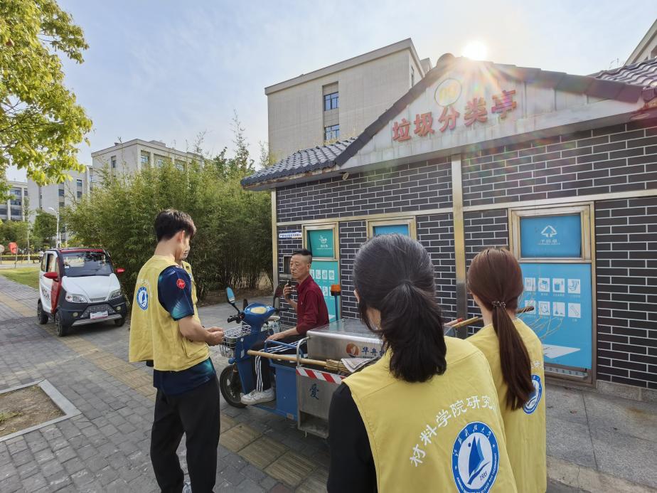 环卫工师傅:目前一切都挺顺利,物业公司给我们配备齐了清洁道路和打扫卫生的工具和设施,下雨天也会给我们提供雨衣。而且咱们学校的学生素质都挺高的,极少看见乱丢垃圾的现象。”