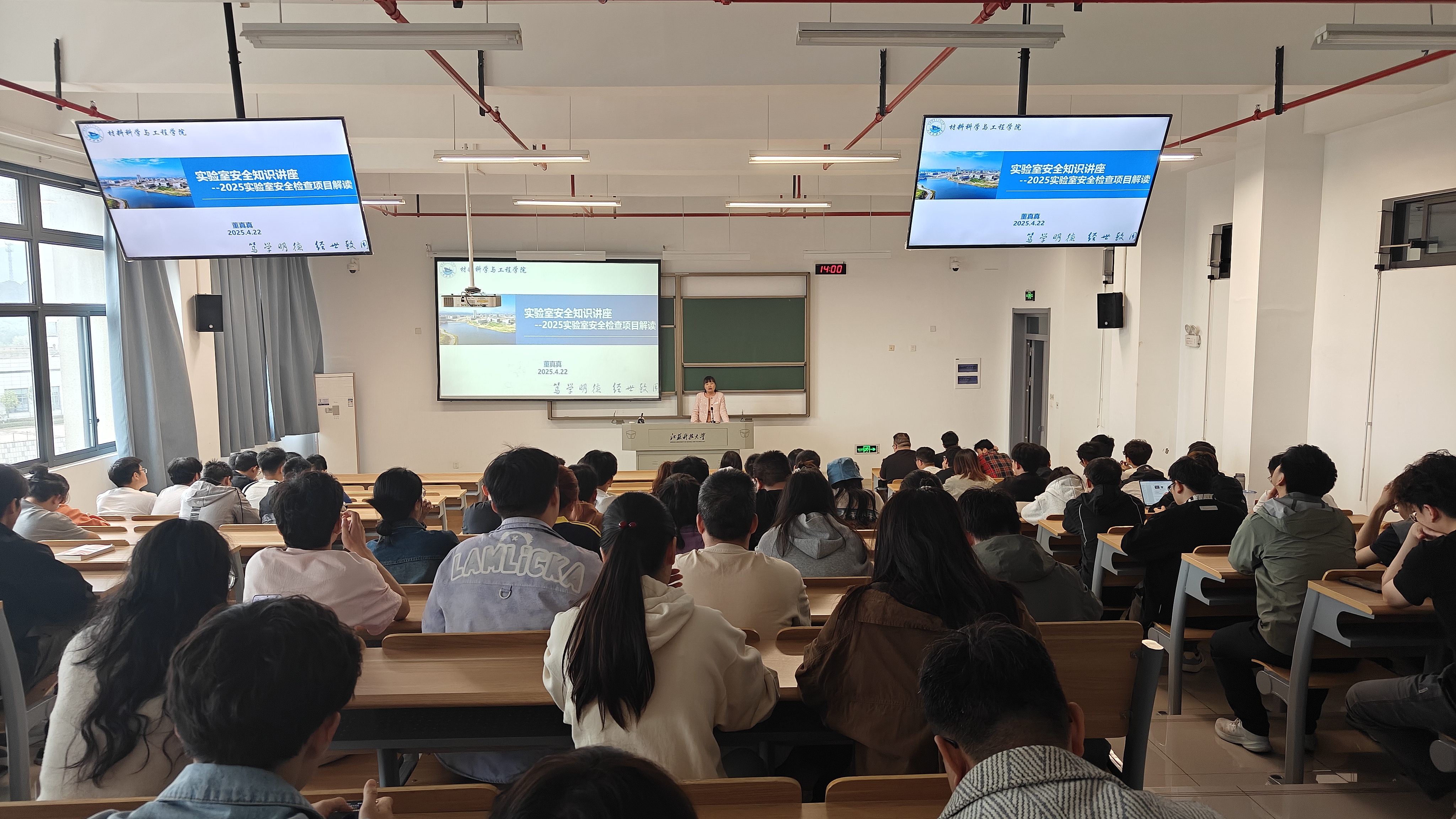 422日下午,我院成功举行了本学期第二次实验室安全知识讲座。讲座由分管实验室安全工作的陈书锦院长策划,学院专职安全员董真真老师主讲,面向全体师生开放,共有师生150人参加了讲座活动。
