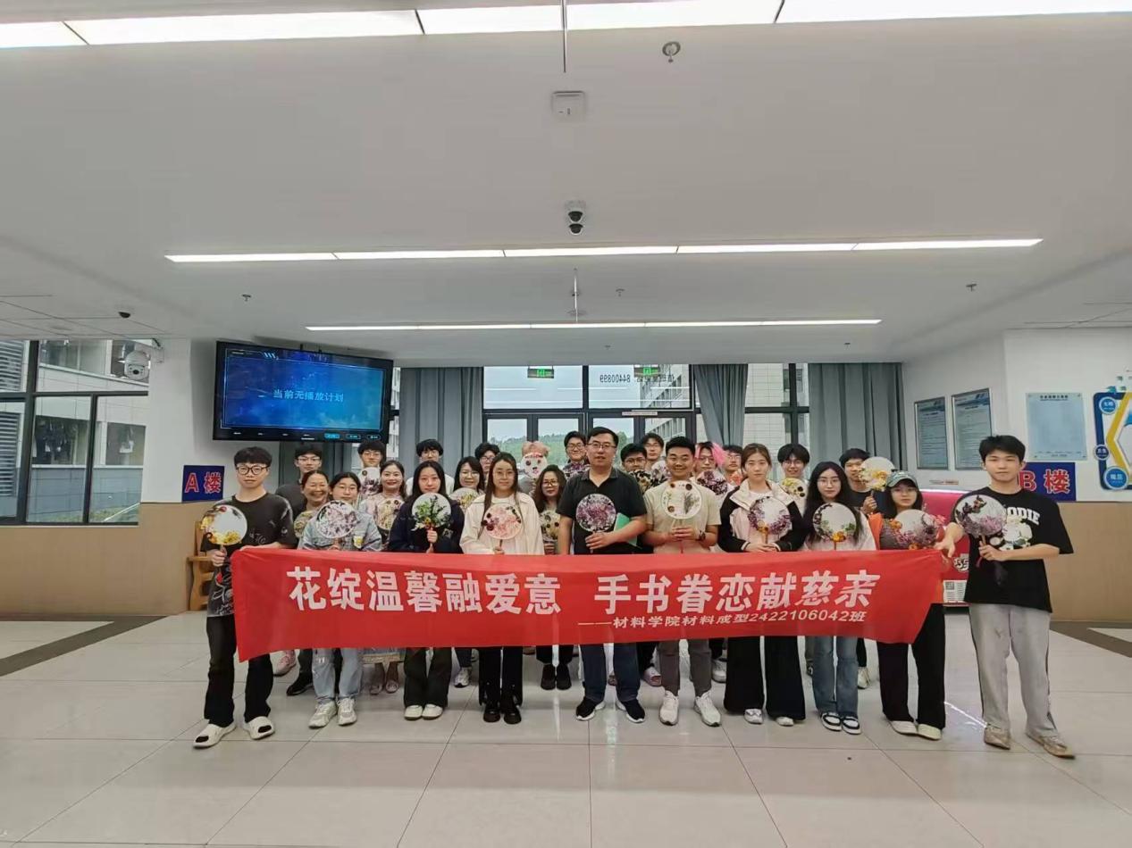 在母亲节来临之际,为凝聚和提升孝母感恩的良好道德风尚,营造校园的温情氛围,5月8日,江苏科技大学材料学院“护航”一站式社区举办“花绽温馨融爱意,手书眷恋献慈亲”主题活动。材料学院党委副书记杨海涛、24级材料成型专业学业导师臧千昊、杨飞,“护航”一站式社区部分学生参加了本次活动。