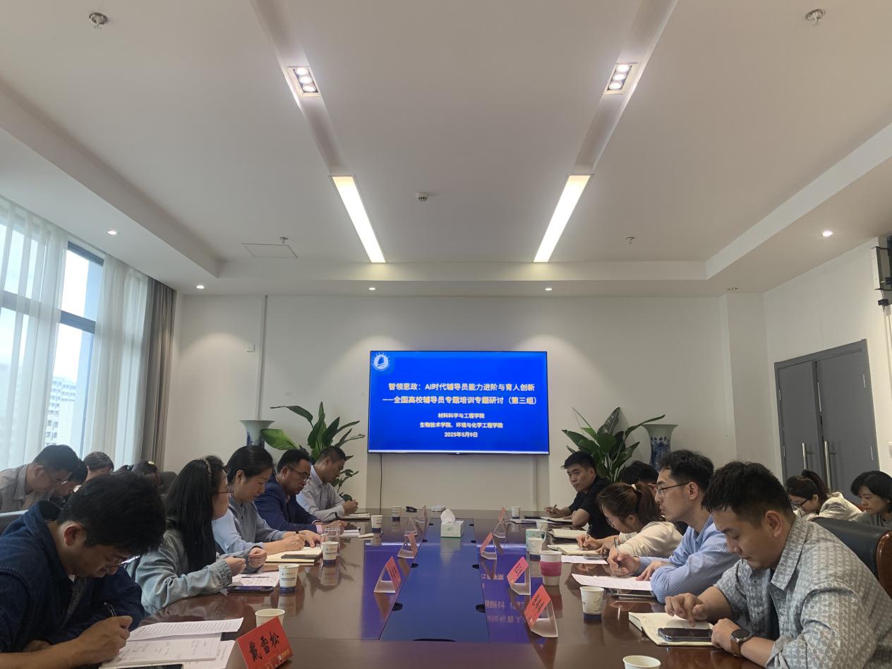 5月9日,为探索人工智能技术与高校思政教育的深度融合,由材料科学与工程学院、生物技术学院、环境与化学工程学院辅导员组成的全国辅导员培训第三组专题研讨会在材料学院512会议室成功举办。本次研讨以“智领思政:AI时代辅导员能力进阶与育人创新”为主题,材料学院党委副书记杨海涛、环化学院党委副书记王召征、就业指导中心李宣虹主任及全体辅导员参与研讨。会议由杨海涛主持。