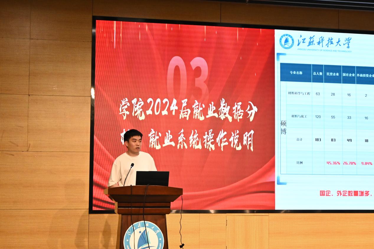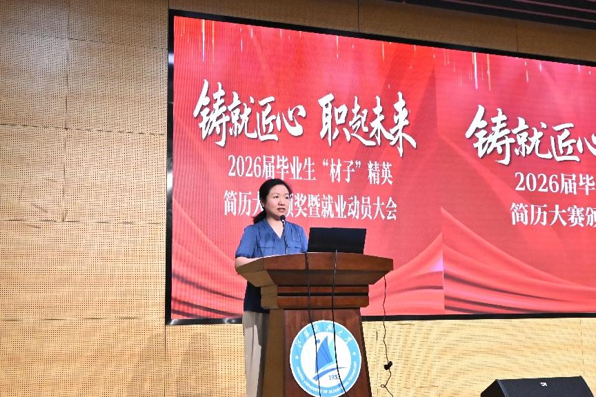 5 月 19 日,江苏科技大学材料学院在长山校区图书馆 B105 报告厅举办 “铸就匠心、职起未来”2026 届毕业生简历大赛颁奖暨就业动员大会,为即将踏上求职征程的学子们搭建了技能提升与经验交流的平台。学院党委副书记杨海涛主持会议,二重(镇江)重型装备有限责任公司人事经理章婕女士、学院就业辅导员曹天龙、毕业班辅导员刘珣、刘甜甜及 2026 届毕业生参加大会。