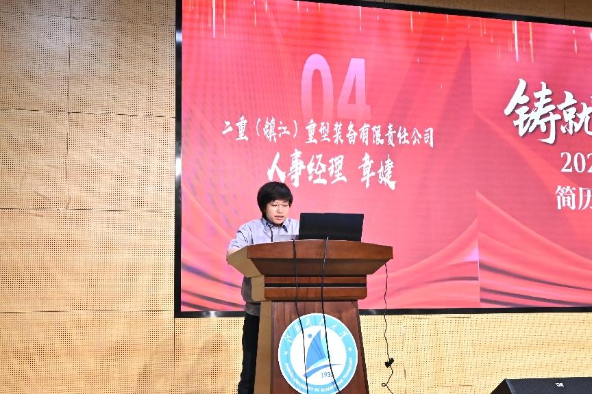 作为企业代表,二重(镇江)重型装备有限责任公司人事经理章婕女士结合自身多年人力资源管理经验,为同学们带来了一场题为“从企业视角看人才需求” 的专题讲座。她详细解析了央国企的人才选拔标准,重点强调了简历撰写中“岗位匹配度”、“成果量化”、“逻辑清晰”三大核心要素,并通过真实案例演示了如何突出专业技能与实践经历。章婕还建议同学们主动关注行业动态,通过实习、竞赛等途径积累实战经验,提前做好职业定位与能力储备。