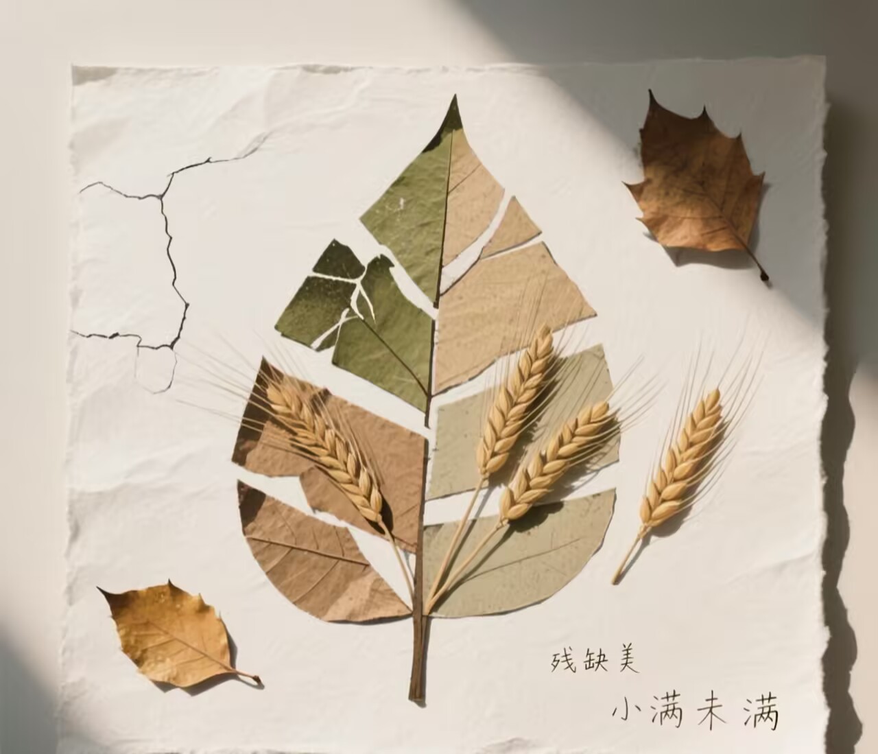 在“时光慢递”创意手作环节,同学们化身自然艺术家,收集校园内的落叶、麦穗、花瓣等时节馈赠,以纸为画布,通过树叶拓印、拼贴等艺术形式,创作出一幅幅独特作品。这一过程不仅锻炼了动手能力,更让同学们在艺术创作中深刻体会到“小满未满”的生命意境,实现了劳育与美育的完美融合。