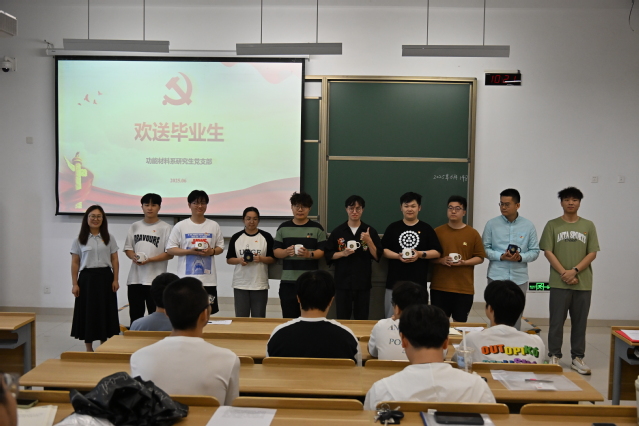 活动伊始,功能材料系研究生党支部书记刘志红为毕业生颁发专属纪念品。精心设计的纪念陶瓷杯以学校、学院特色为灵感,刻有院徽、支部名称字样,既彰显专业初心,又饱含母校、学院对毕业生学子立足行业、服务社会的殷切期望。