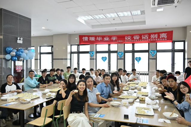 在2025届毕业生离校之际,江苏科技大学一站式学生社区三区党支部联合功能材料系研究生党支部、图书馆第三党支部、功能材料系教工党支部,共同举办“情暖毕业季·饺香话别离”毕业生党员主题活动。一站式学生社区三区党支部书记、校研工部部长徐剑,材料学院党委书记李瑞峰、副书记杨海涛出席活动,与50余名师生党员共话别离、共包团圆饺,为2025届毕业生党员送上“红色毕业礼”。
