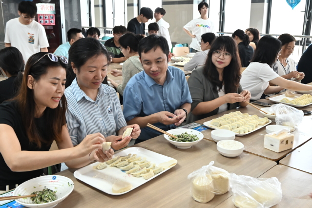 老师与同学们齐聚一堂,围坐在长桌旁,在欢声笑语中包馅、捏褶,将对毕业生们的浓浓的祝福包进饺子里。一个个饱满的饺子在师生们的手中成型,就像党支部精心培育的每一位毕业生党员,经过时间的“揉搓”和成长的“发酵”,如今已准备好奔赴人生的新征程。