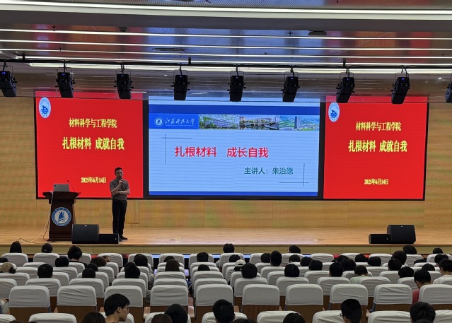 为帮助2024级材料大类本科生深入了解材料类各专业特色和就业前景,更好地做好专业选择和规划,6月15日下午三点材料学院金属材料工程专业邀请河南省科学院特聘研究员、河南省科学院材料研究所副所长兼总工程师朱治愿研究员,在图书馆105报告厅为2024级材料大类本科生做了题为“扎根材料、成长自我”的专题讲座。材料学院金属材料工程专业负责人陈洪美、2024级材料类专业辅导员王远杰老师参加了本次讲座。