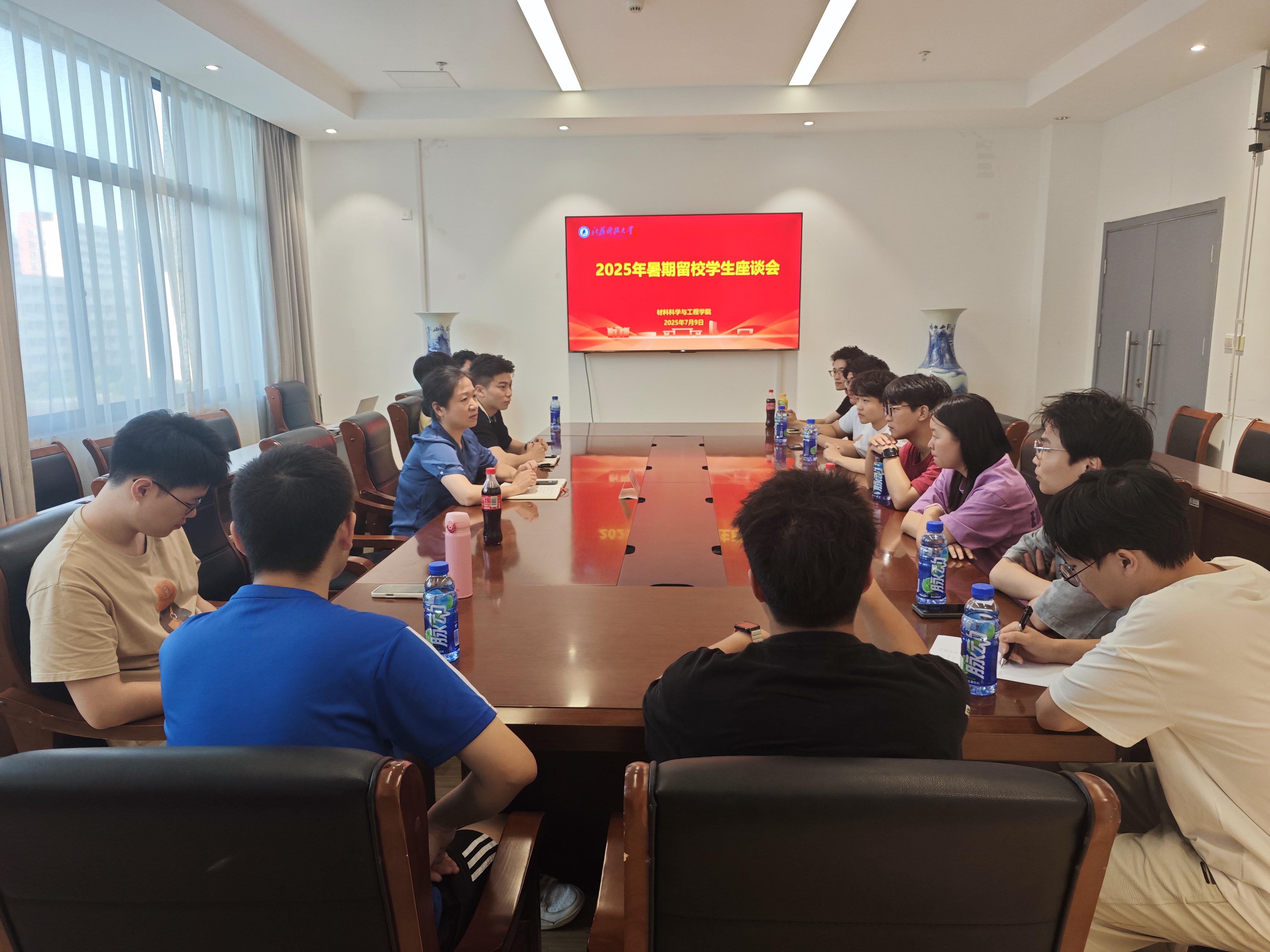 7月9日,学院召开暑期留校学生座谈会,院党委副书记杨海涛、辅导员汪孟超与留校考研学子面对面交流,并为大家送上清凉饮品,在炎炎夏日传递学院的贴心关怀。座谈会上,杨海涛认真倾听同学们当前的复习进度以及所面临的难题,针对大家遇到的问题一一解答,并暖心叮嘱:“学院永远是你们坚实的后盾,若遇到任何问题,可随时联系,我们会为大家的备考之路保驾护航。”