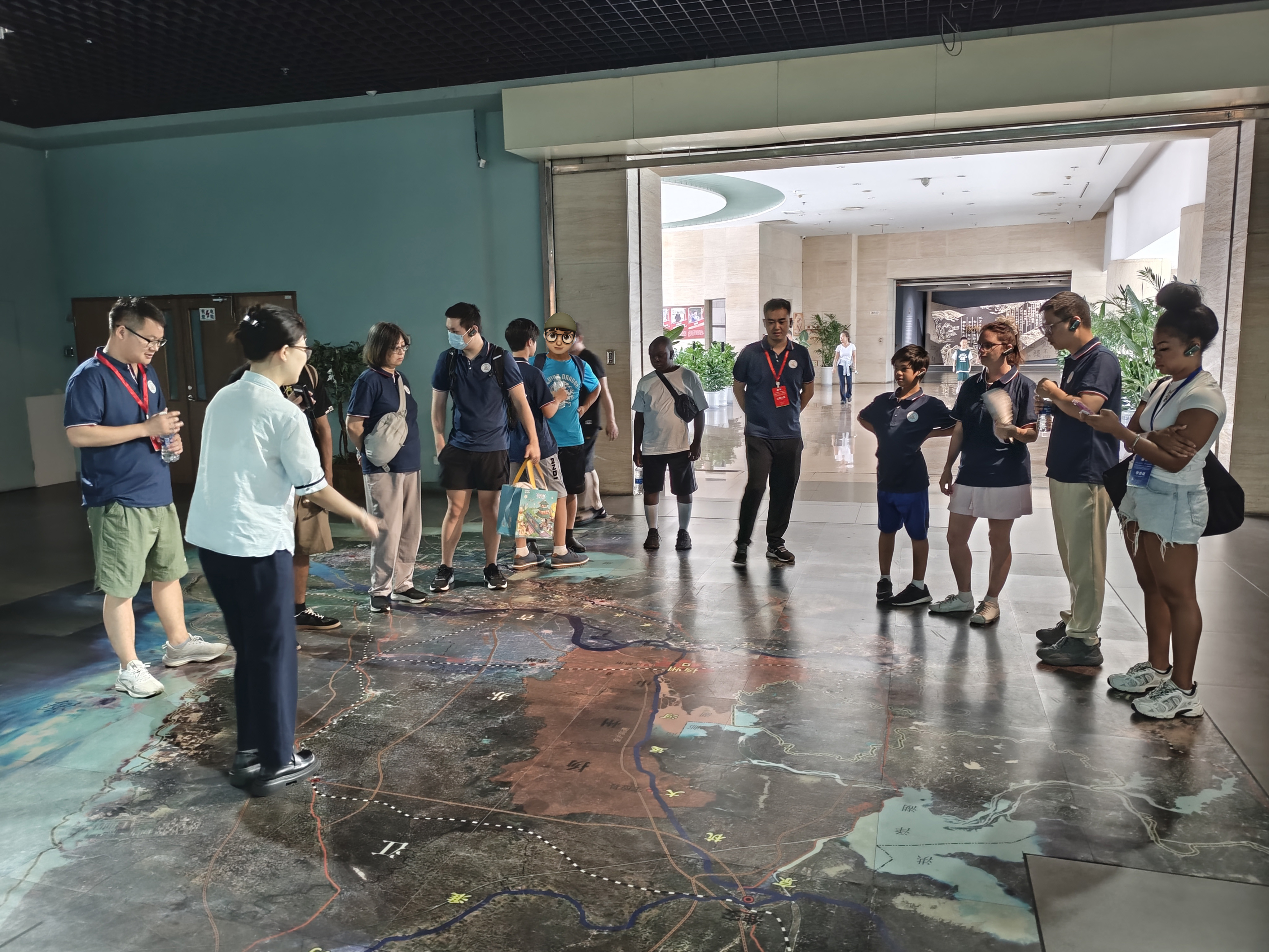 上午,外国学子走进扬州博物馆,开启文化探索之旅。讲解员以宁镇扬地质水系为中心,从历史文物到地域文化发展,细致讲解一衣带水的镇江扬州运河文化。学子们聆听扬州在“海上丝绸之路”及区域发展中扮演的角色,透过文物展品,触摸古江苏商贸往来、文化交融的历史印记,深入理解“共筑丝绸之路”的历史渊源与时代意义。