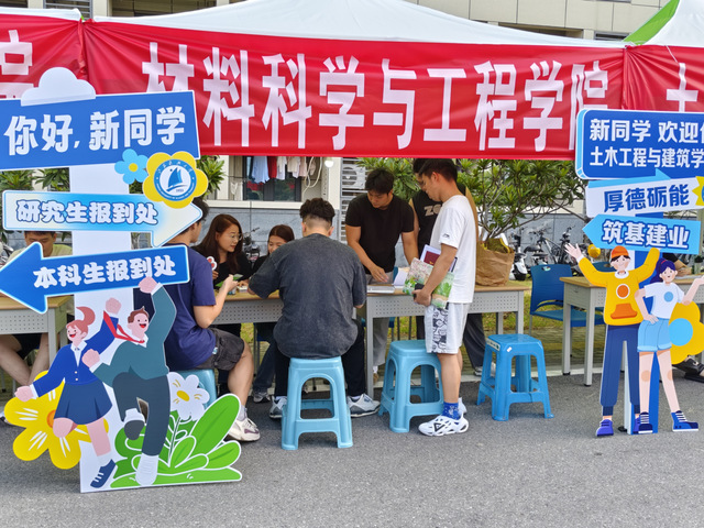 校内的“腾飞”志愿者们成为一道亮丽的风景线。他们不仅主动帮助新生搬运行李、指引道路,更热情地分享校园学习生活经验,让初入校园的新同学们感受到材料学院大家庭的温暖。