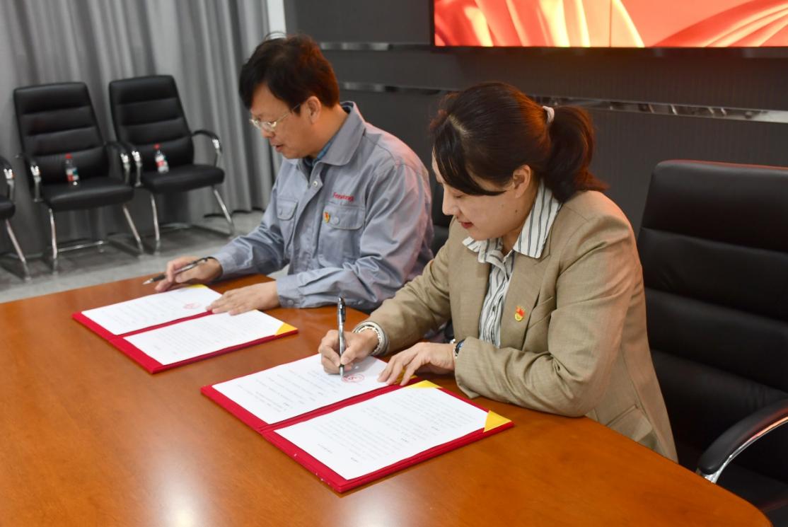 在双方与会人员的共同见证下,金属材料系教工党支部书记陈洪美与丰东热技术有限公司党委副书记徐晓健共同签署《党建共建协议》,为双方后续的深度合作奠定了坚实的组织基础。