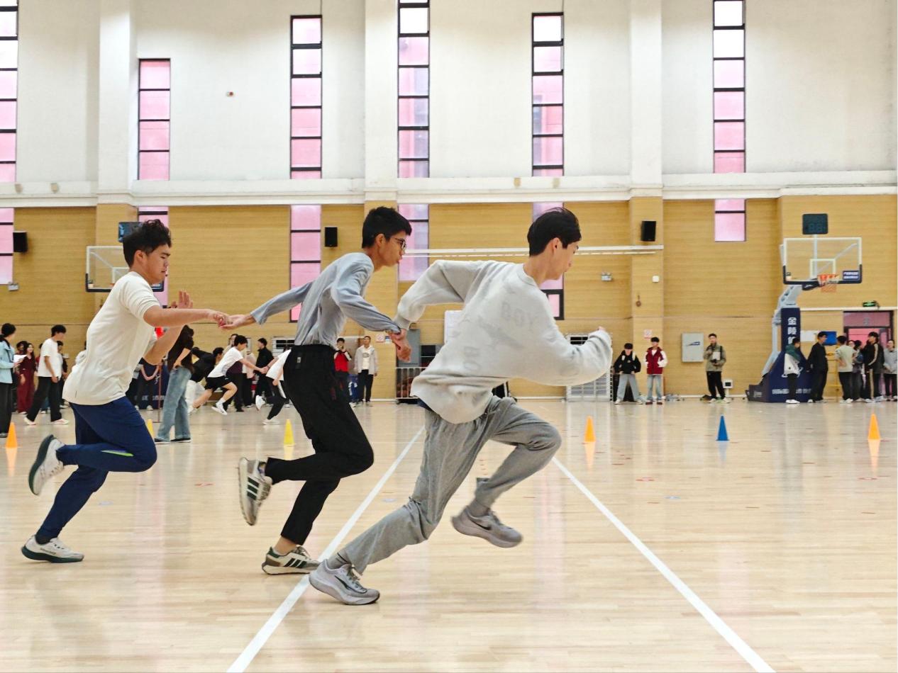 学院教职工也积极参与八段锦、争先恐后、凝心聚力、跳大绳等集体运动项目;张恒、禚孝儒、张世文、汪孟超四位老师参加了学生甲组的男子200米、1500米、跳远和100米项目,与青年学子同台竞技,跃动的身影尽显青春风采。