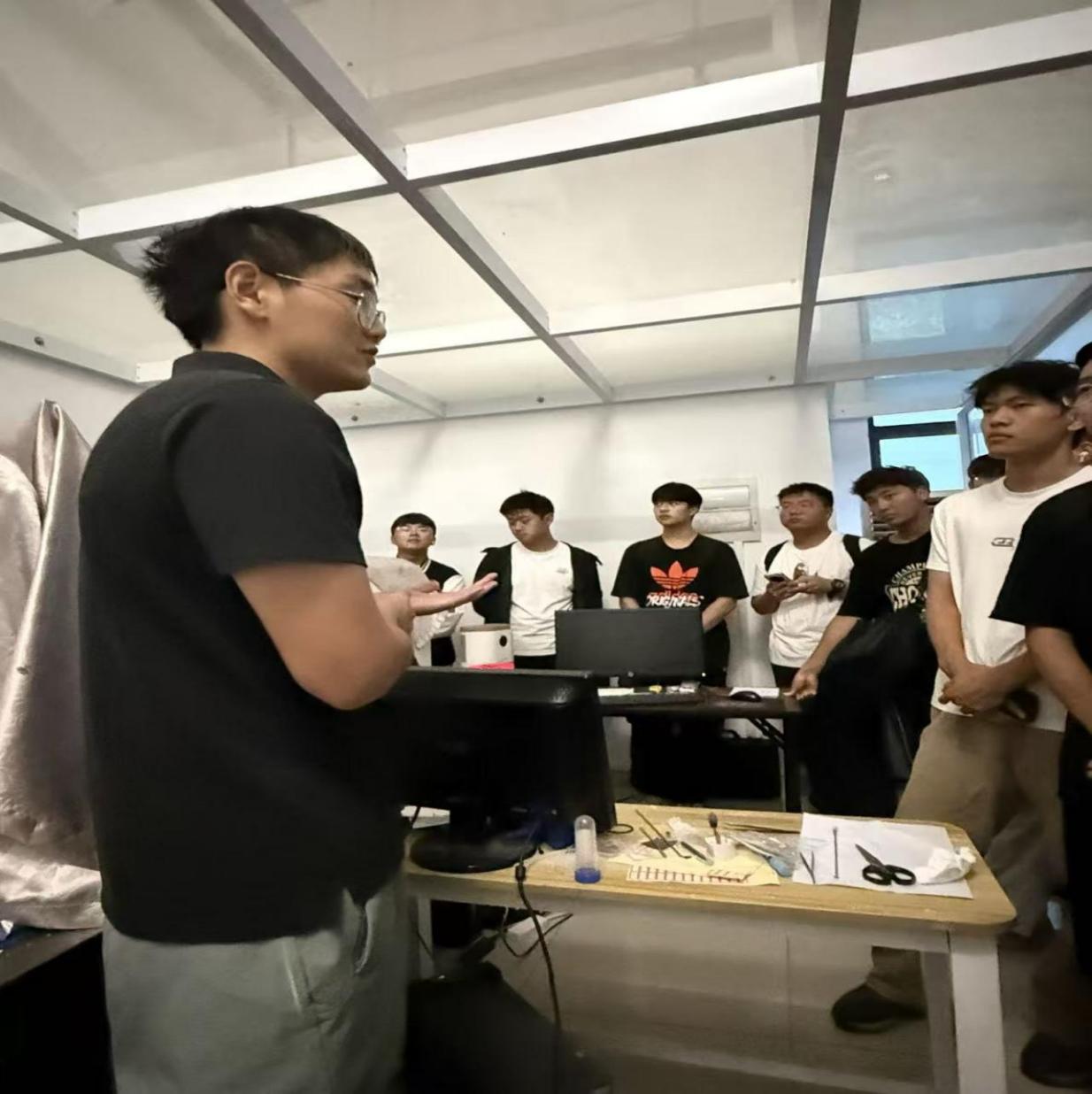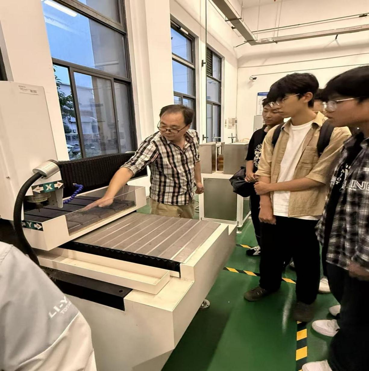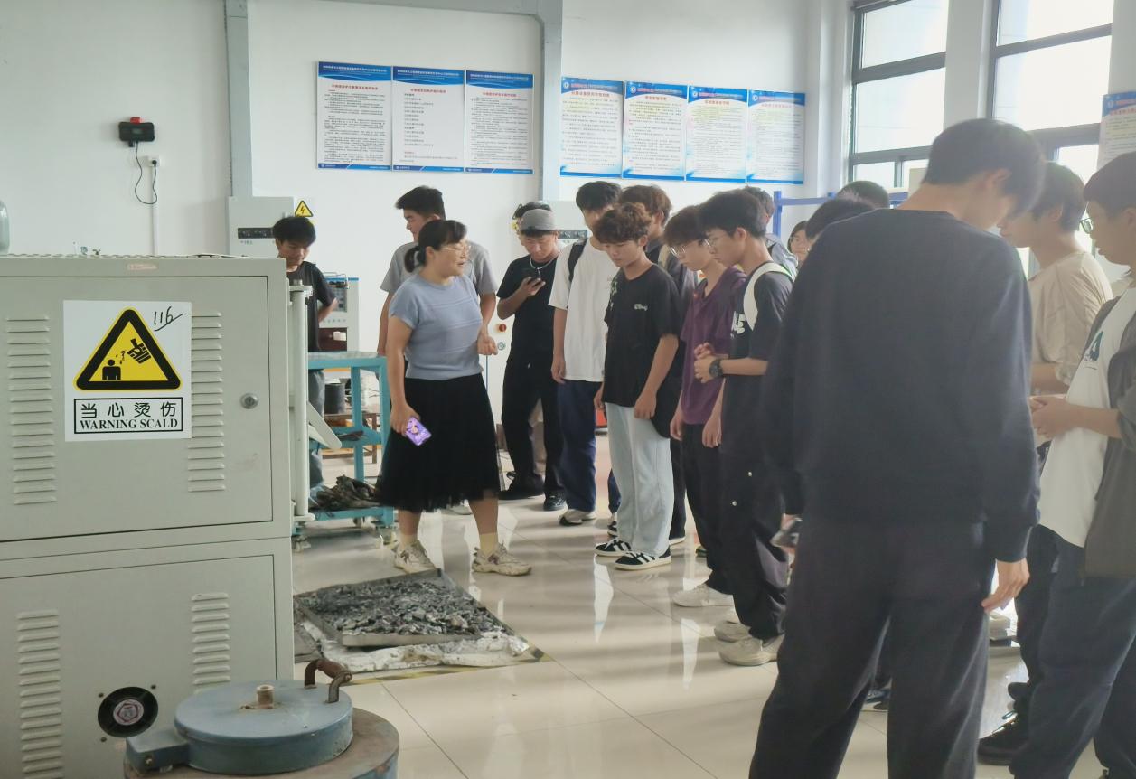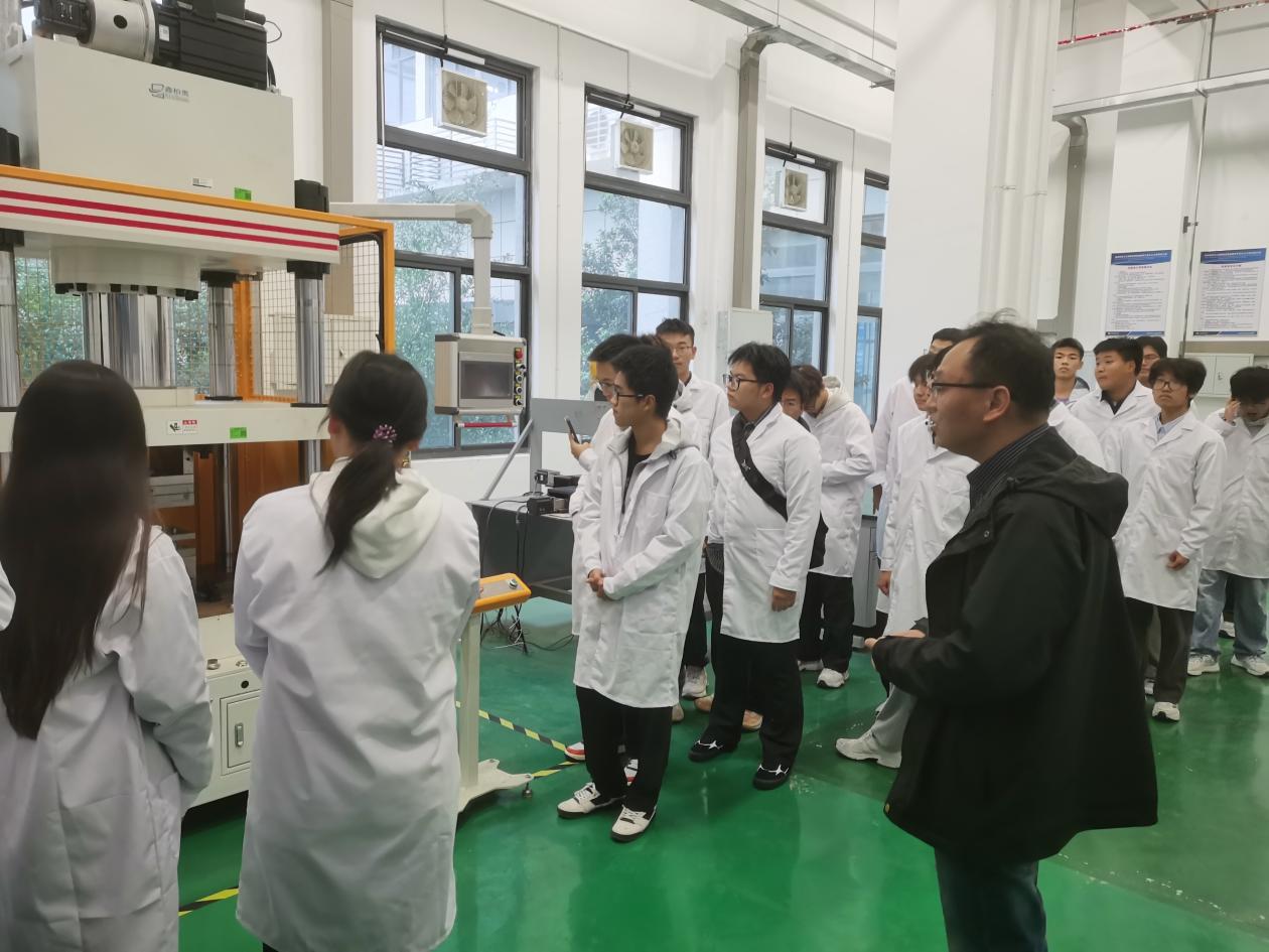 材料成型专业新生在黄忠富、朱杰、邵勇三位老师带领下,开展多维度实验室探索。拉伸力学性能实验室里,黄老师详解拉伸试验机原理、操作流程及在材料强度测试中的应用;在热处理实验室中以菜刀为例,科普热处理炉功能及相关工艺对材料性能的改善;焊接机器人实验室里,朱老师向大家阐述了焊接技术的应用价值,并结合搅拌摩擦焊实验室通过铝合金样品讲解绿色焊接,展示金属 3D 打印产品;邵老师则趁热打铁带领新生走进 3D 打印与模具拆装实验室,观摩实物、介绍冲压模具及工艺,分享专业赛事信息,助力新生拓宽专业视野。