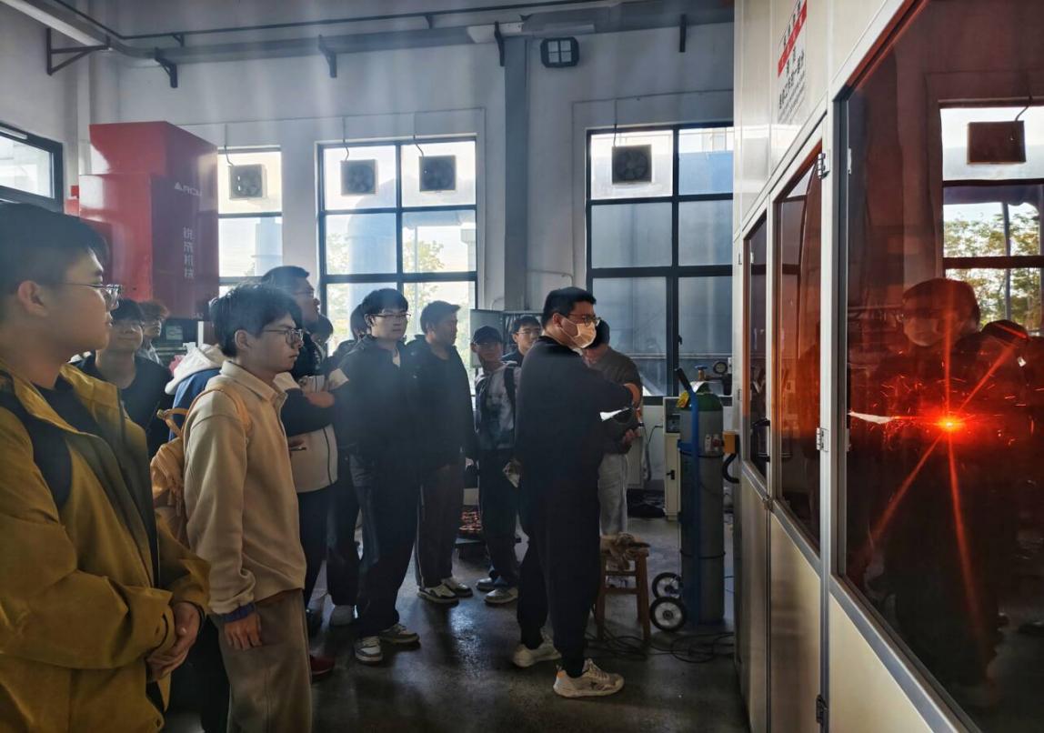 在朱杰老师的带领下,焊接专业新生有序走进锻造实验室、焊接实验室、质量检测实验室、工艺实验室等核心场地。从轰鸣运作的弧焊机器人到精准高效的激光/电弧复合焊接设备,从力量感十足的碰撞冲压装置到探索微观世界的扫描电子显微镜,再到守护质量的无损检测系统,朱老师结合设备原理细致拆解实验课程核心内容,通过现场演示强化互动交流,将 “实践+理论,学术+生活” 的能力培养理念生动传递。依托实验室承担的船舶制造、海洋工程等关键项目,朱老师将 “兴船报国” 内核、海洋强国战略与专业实践紧密联结,深刻诠释 “焊花铸魂、精益求精” 的专业精神,让新生切实体会到专业的时代价值与使命担当。