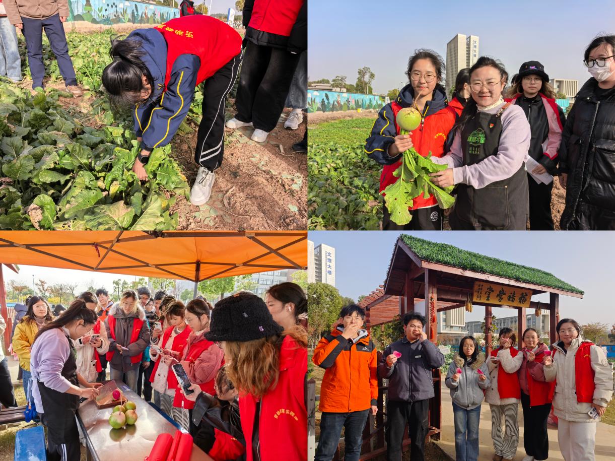 随后开展的“拔萝卜”环节将气氛推向高潮。在任老师指导下,党员和团员们踊跃下地,亲手将一个个沾着泥土清香的萝卜拔出。手捧劳动成果,大家脸上洋溢着收获的喜悦。紧接着,同学们分工协作,清洗、切片、装盘,共同分享这份新鲜的劳动果实。清脆的咀嚼声与欢声笑语交织在一起,大家在品尝甘甜的同时,深刻体会到“劳动创造价值”的真谛,也感受到校园集体生活的温暖与融洽。