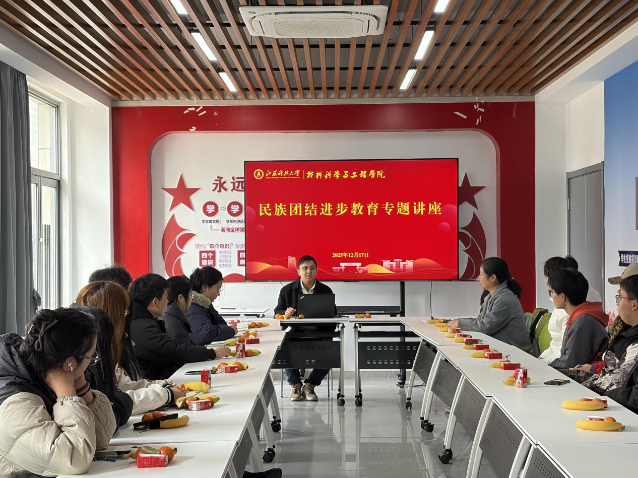 为扎实推动民族团结进步教育,进一步铸牢中华民族共同体意识,营造包容和谐、互助共进的校园文化氛围,材料学院于2025年12月17日在学校一站式学生社区,成功举办民族团结进步教育专题讲座暨少数民族学生座谈交流活动。材料学院党委副书记杨海涛参加活动,学生处少数民族学生教育管理教师阿卜杜应邀作专题报告。