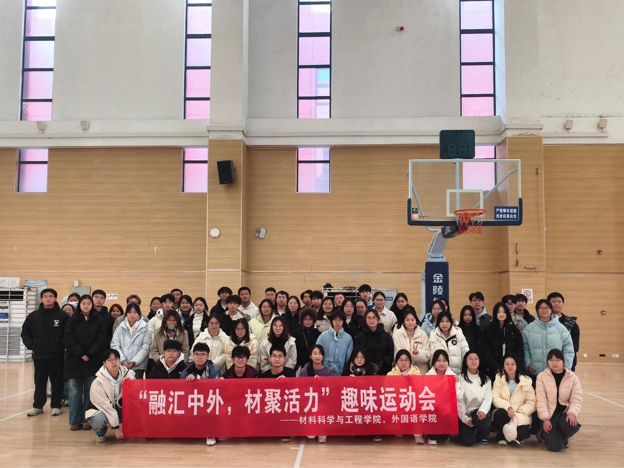 为深化跨院交流、丰富课余生活,12月14日,材料科学与工程学院与外国语学院在学校体育馆篮球场联合开展“融汇中外,材聚活力”破冰趣味运动会,两院约80名同学积极参与,在轻松愉快的氛围中共度了一段充满欢笑与合作的时光。